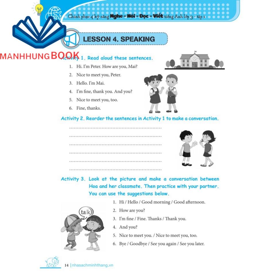 Công ty Học Liệu Sư Phạm giới thiệu: 1,Chinh phục 4 kỹ năng tiếng anh Nghe - nói - đọc - viết lớp 5 tập 1 Tác giả: Bùi Văn Vinh - Dương Thị Hồng