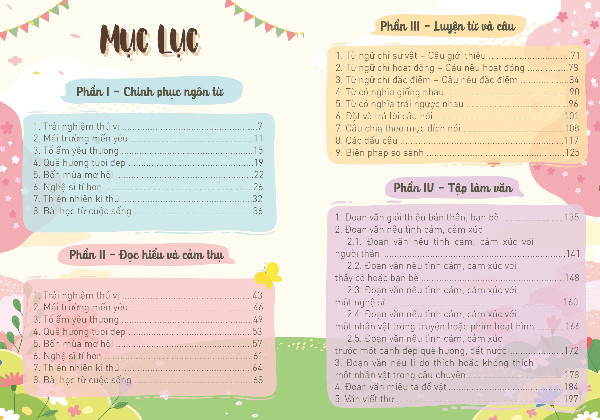 Mua tại Tiktok- Sách in màu khổ A4, dày 204 trang, thiết kế sinh động, hấp dẫn- Nội dung: Chinh phục ngôn từ, Rèn luyện kĩ năng đọc hiểu và cảm thụ, Luyện từ và câu, Rèn luyện các dạng văn trong chương trình sách mới, bám sát cả ba bộ sách (Kết nối tri thức với cuộc sống, Cánh diều, Chân trời sáng tạo)- Sách dành cho các bạn lớp 3 muốn củng cố, hiểu sâu, mở rộng và nâng cao kiến thức về Văn - Tiếng Việt trong chương trình SGK mới.