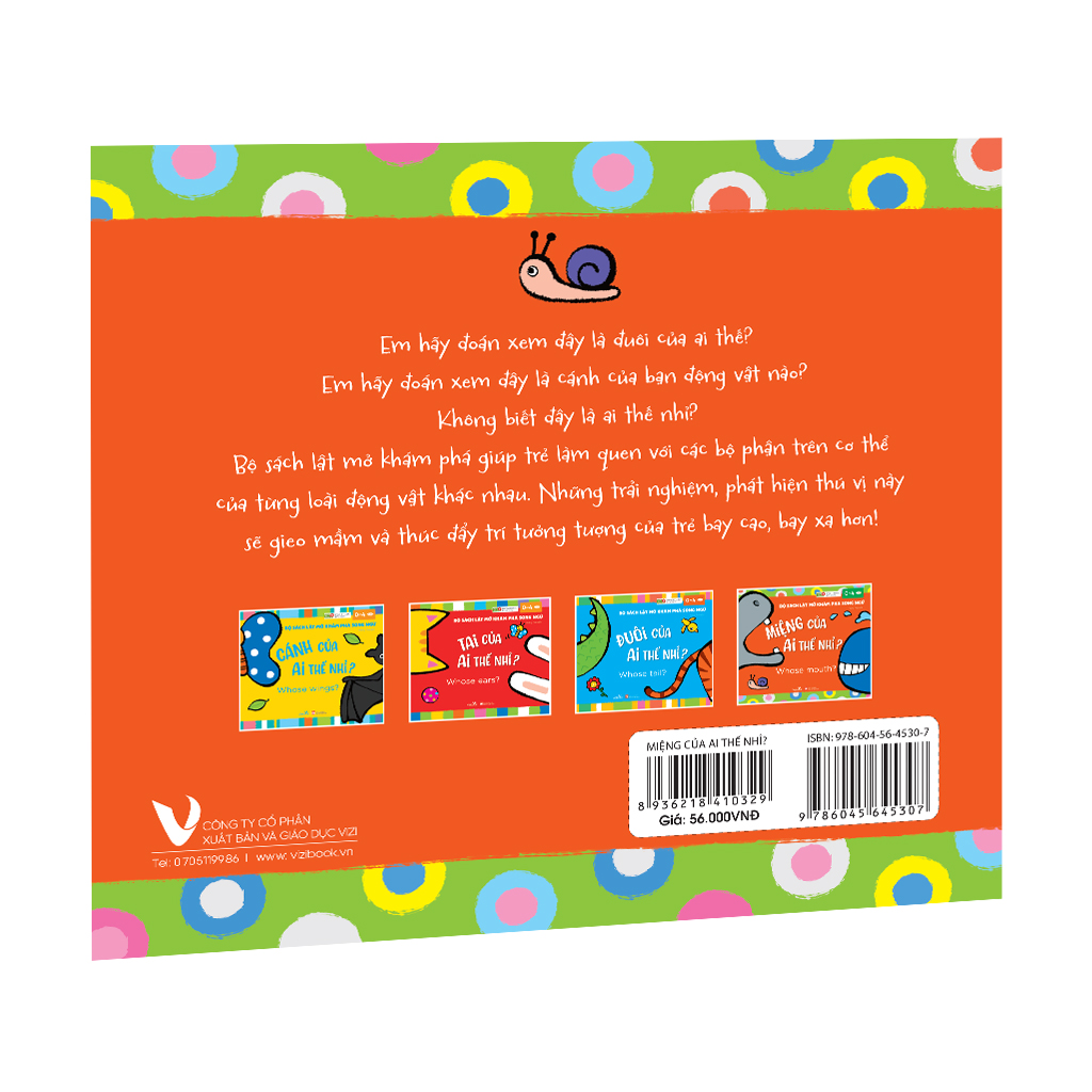 Đặc biệt, sách được biên soạn với song ngữ Việt - Anh, không chỉ giúp trẻ làm quen với các bộ phận trên cơ thể động vật mà còn dần dần mở ra thế giới ngôn ngữ mới, một cách tự nhiên và đầy hấp dẫn. Hãy để “MIỆNG CỦA AI THẾ NHỈ? - Whose mouth?” trở thành bạn đồng hành trong hành trình khám phá thế giới động vật của bé!