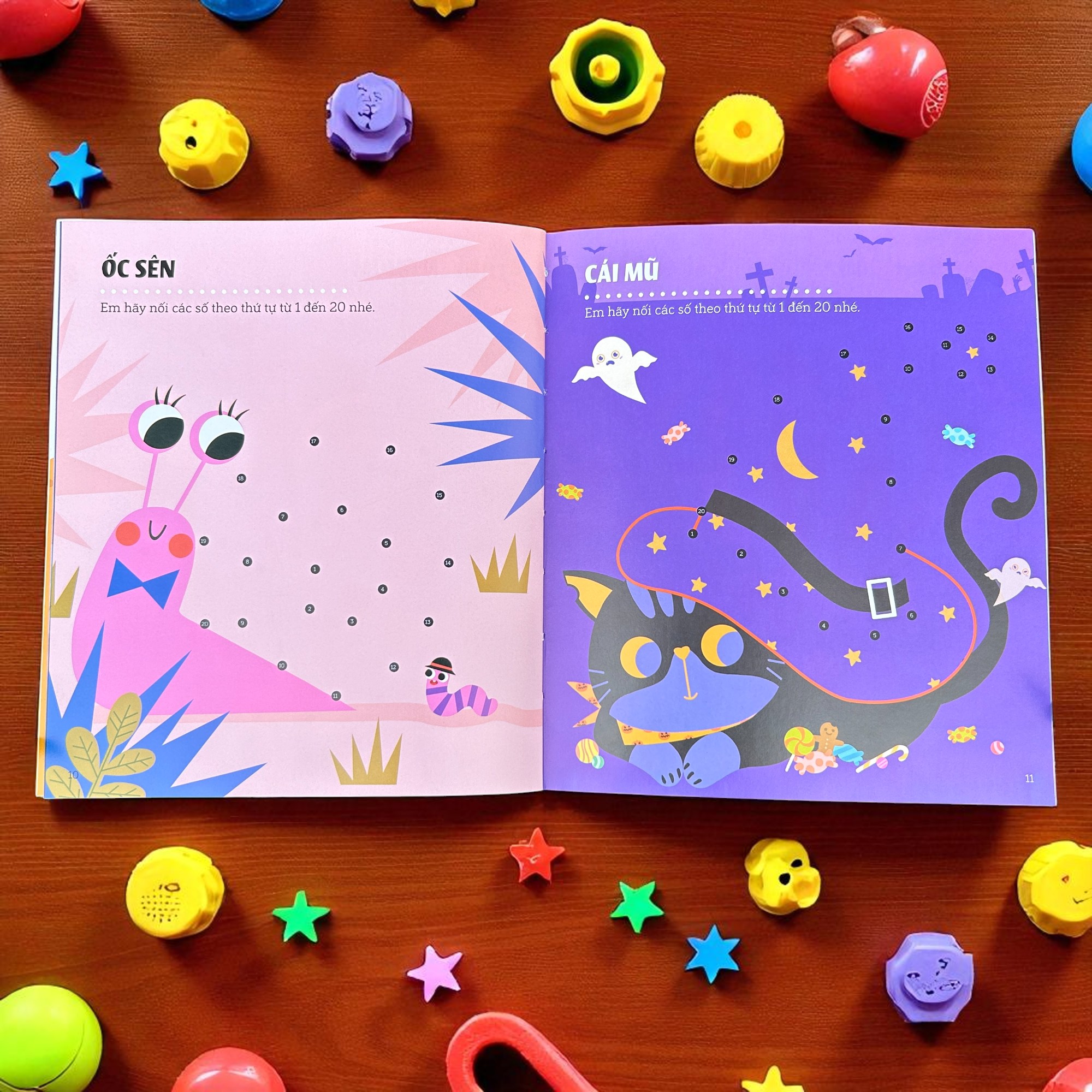 Cuốn sách được chia thành nhiều thử thách tăng dần từ đơn giản đến nâng cao: Nối số từ 1–10: Phù hợp cho các bé mới làm quen với con số, giúp nhận biết trình tự và rèn kỹ năng cầm bút, quan sát; Nối số từ 1–20, 1–30: Tăng mức độ tập trung, luyện trí nhớ, khả năng đếm và nhận diện số; Nối số từ 1–50 và lên tới 100: Với các hình ảnh phức tạp hơn như khủng long, tàu thủy, ông già Noel, khu vui chơi, căn nhà kẹo ngọt, rạp xiếc… giúp trẻ tập trung cao độ trong thời gian dài, luyện kiên trì và sự hoàn thiện.