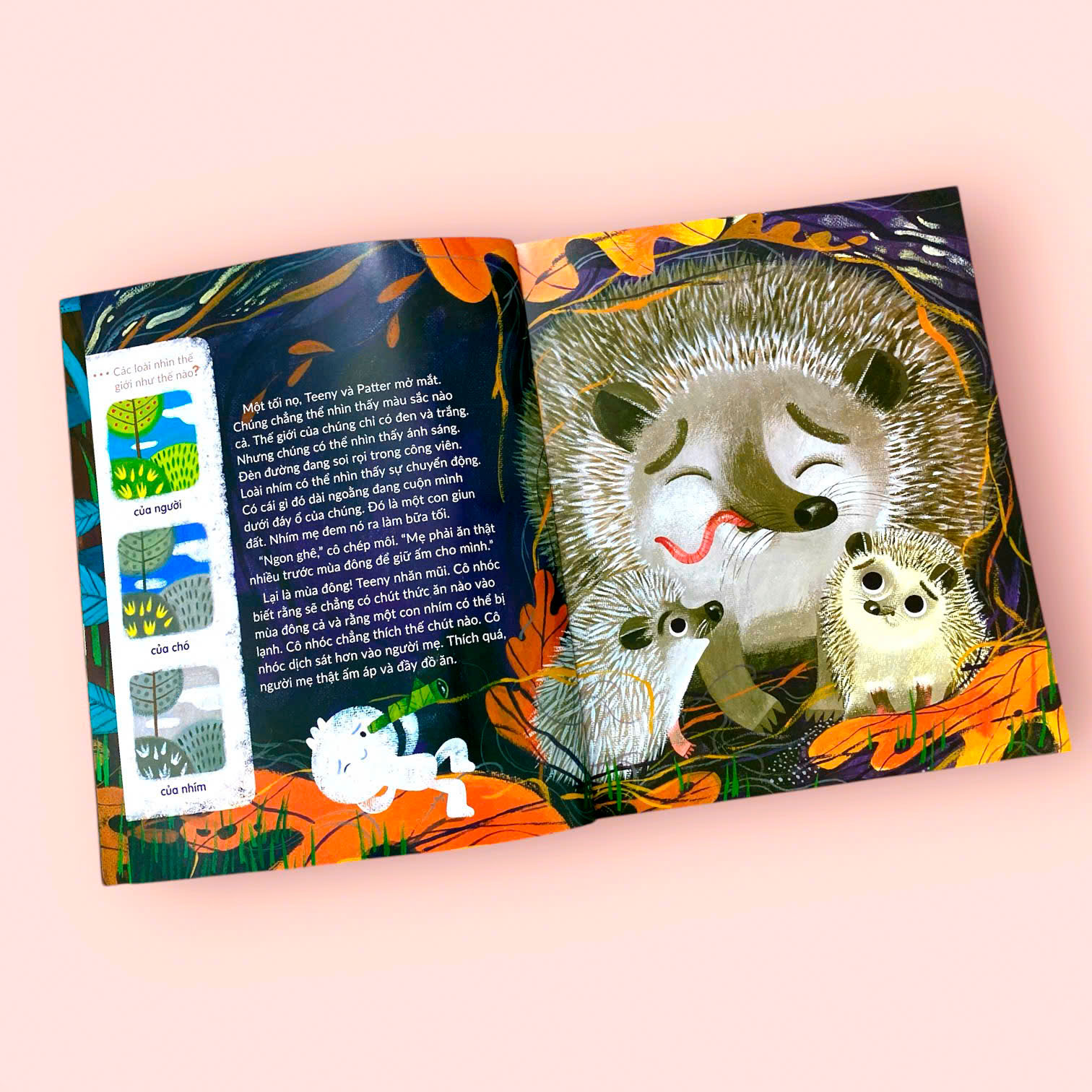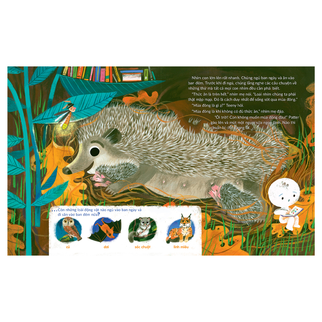 NHÀ NHÍM NƠI CÔNG VIÊN Ở cuốn sách này, sẽ đưa các bạn khám phá môi trường sống của gia đình nhím trong công viên - nơi ẩn chứa nhiều điều thú vị và bất ngờ. Các bạn sẽ được biết đến những thử thách mà hai anh em nhím Patter và Teeny phải đối mặt để sinh tồn trong thế giới đầy rẫy nguy hiểm. Chúng ta sẽ cùng tìm hiểu cách mẹ nhím chăm sóc con non, cách Teeny học hỏi những kỹ năng cần thiết để tự lập và chuẩn bị cho mùa đông khắc nghiệt. Với những bức tranh minh họa sinh động và đẹp mắt, cuốn sách không chỉ khơi gợi trí tưởng tượng và sự tò mò của các bạn nhỏ mà còn mang đến những kiến thức bổ ích về thói quen và lối sống của loài nhím. Qua đó, các bạn sẽ hiểu hơn về thế giới tự nhiên và thêm trân trọng sự đa dạng sinh học của Trái Đất.