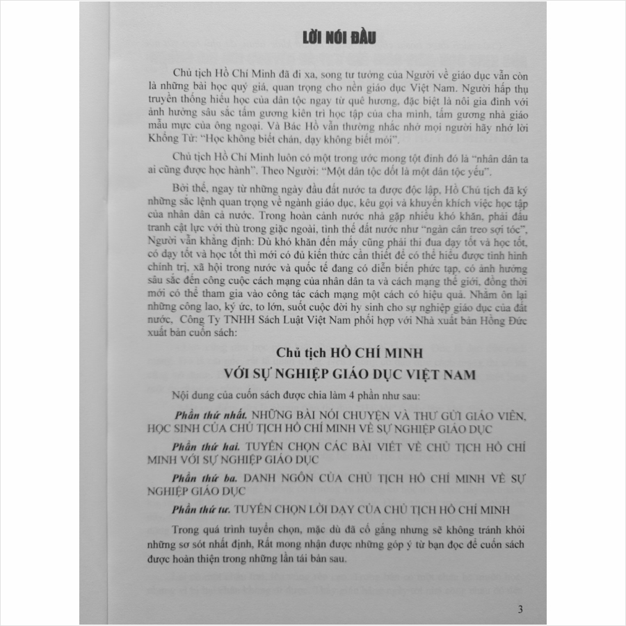 Nhằm ôn lại những công lao, ký ức, to lớn suốt cuộc đời hy sinh cho sự nghiệp giáo dục của đất nước, Nhà sách Nam Việt xin trân trọng giới thiệu cuốn sách: CHỦ TỊCH HỒ CHÍ MINH VỚI SỰ NGHIỆP GIÁO DỤC VIỆT NAM