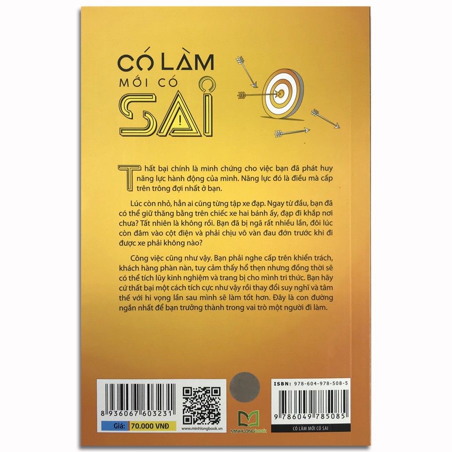 Trong công việc, nhiều lúc chúng ta sẽ phải đối mặt với những cảm xúc khá mâu thuẫn. Một mặt mong đợi, háo hức muốn thể hiện khả năng của bản thân nhưng mặt khác lại có phần bất an, lo lắng mình không thể hoàn thiện tốt công việc. Cuốn sách “Có làm mới có sai” sẽ giúp bạn có thể điều tiết những cảm xúc tiêu cực - tích cực để thực sự sẵn sàng đối mặt với những thử thách phía trước trên chặng đường sự nghiệp.