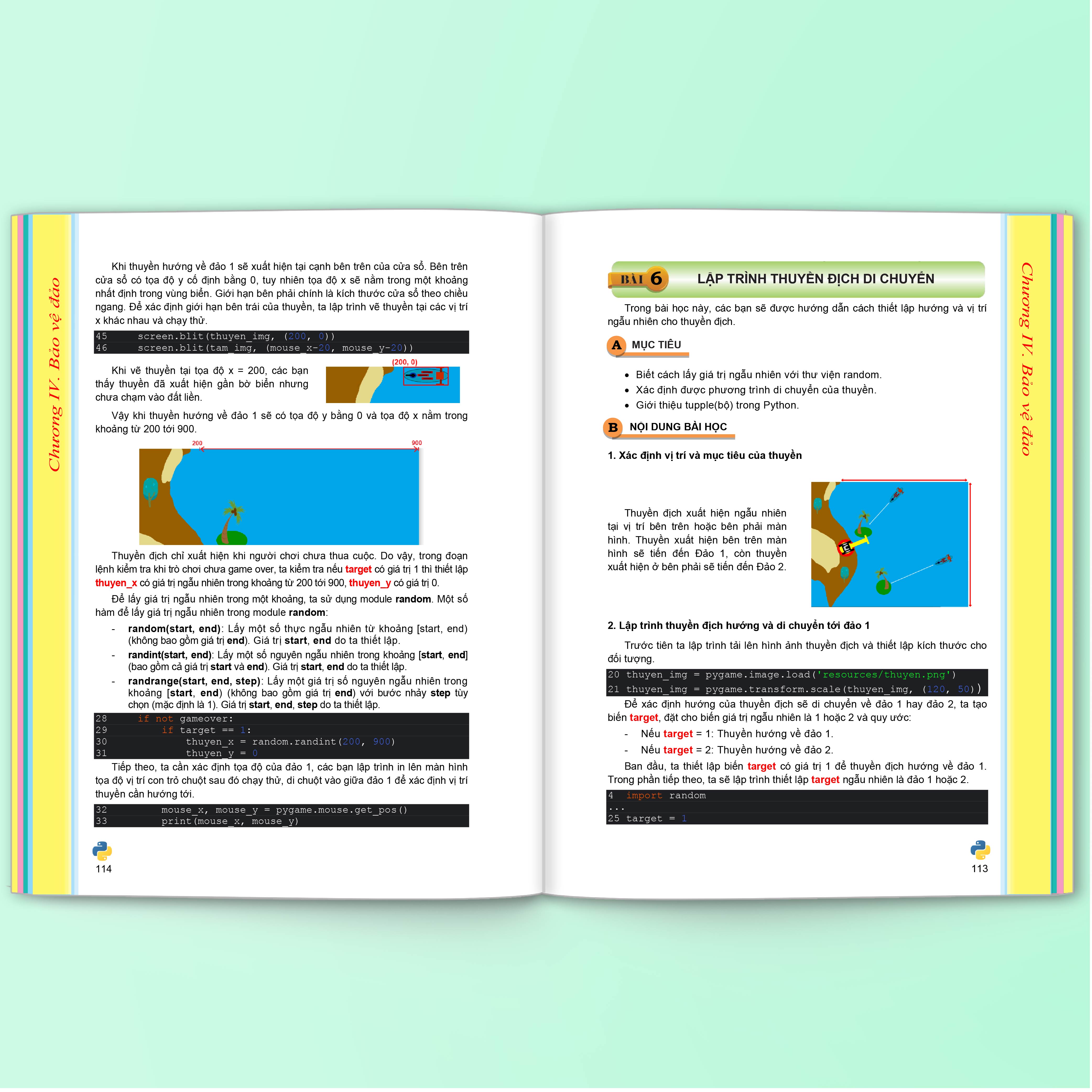 + Chương IV: Học được cách thêm âm thanh, hình ảnh vào dự án cũng như xử lý các sự kiện để tạo trò chơi, từ đó học được thêm các kiến thức về vòng lặp for, toán tử logic và danh sách qua dự án Bảo vệ đảo.