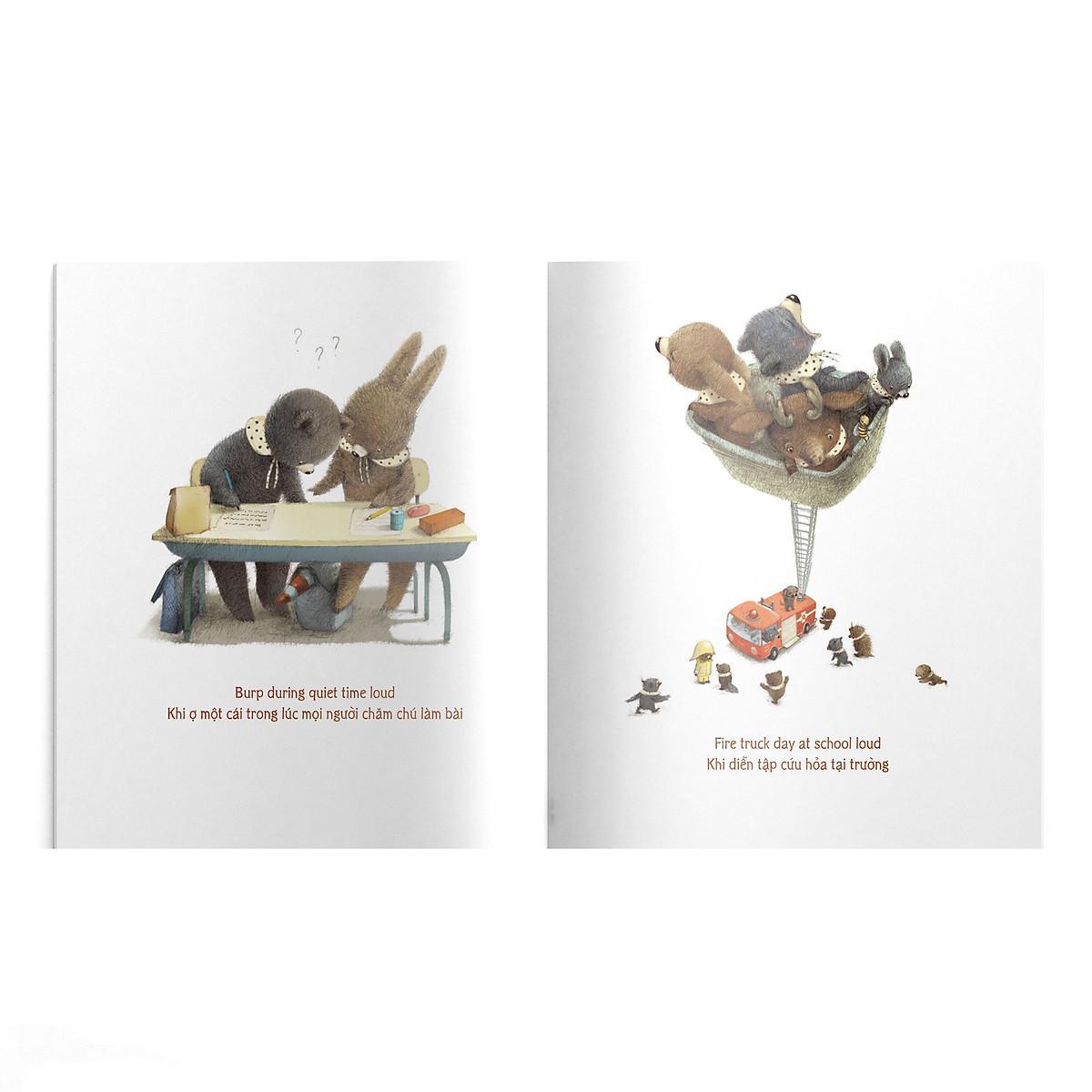 Cuốn sách là bộ sưu tập những khoảng lặng mà bất kỳ ai cũng có thể bắt gặp trong đời: khi là người đầu tiên thức giấc, khi rỉ tai nhau những bí mật, khi chăm chú tô màu… Và còn những khoảnh khắc im lặng nào khác nữa, mời các em cùng khám phá nhé.
