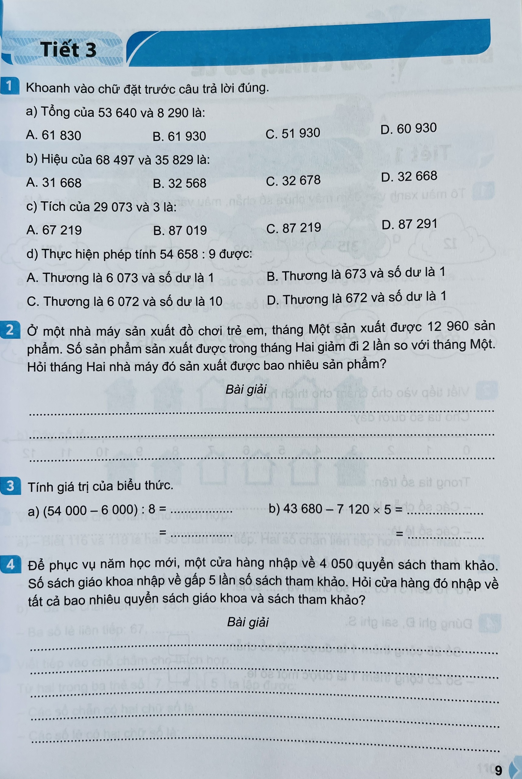 TOÁN LỚP 4 SGK Tập 1 Bài 2 Trang 9 - ÔN TẬP CÁC PHÉP TÍNH TRONG PHẠM VI 100 000 - Kết Nối Tri Thức