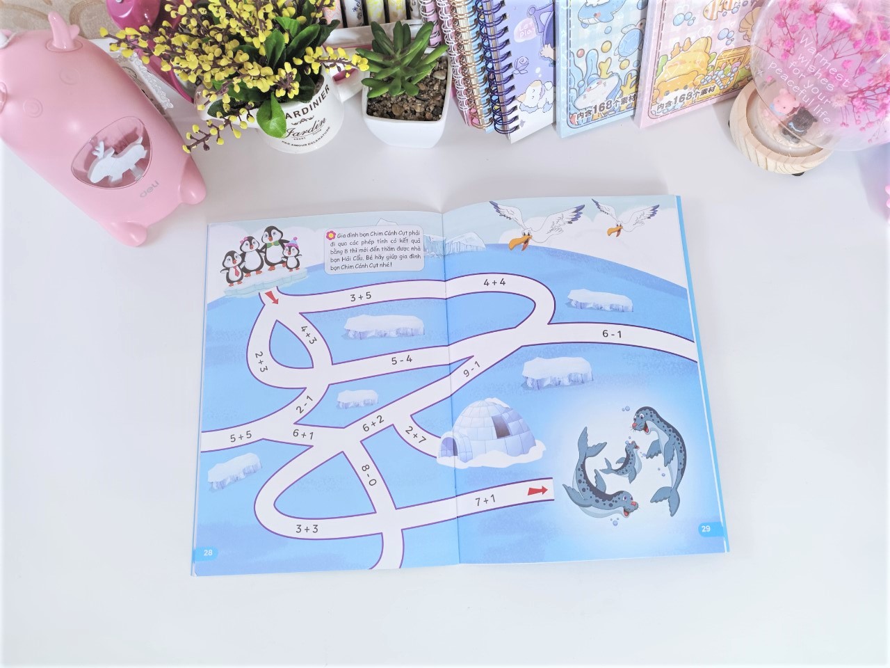 Mỗi cuốn sách giúp bé rèn luyện những kĩ năng khác nhau như làm quen với chữ số, chữ cái, ghép vần, chữ hoa, học đọc, học đếm… Với kiến thức mới mẻ, hình vẽ sinh động sẽ khiến trẻ cảm thấy hứng thú.