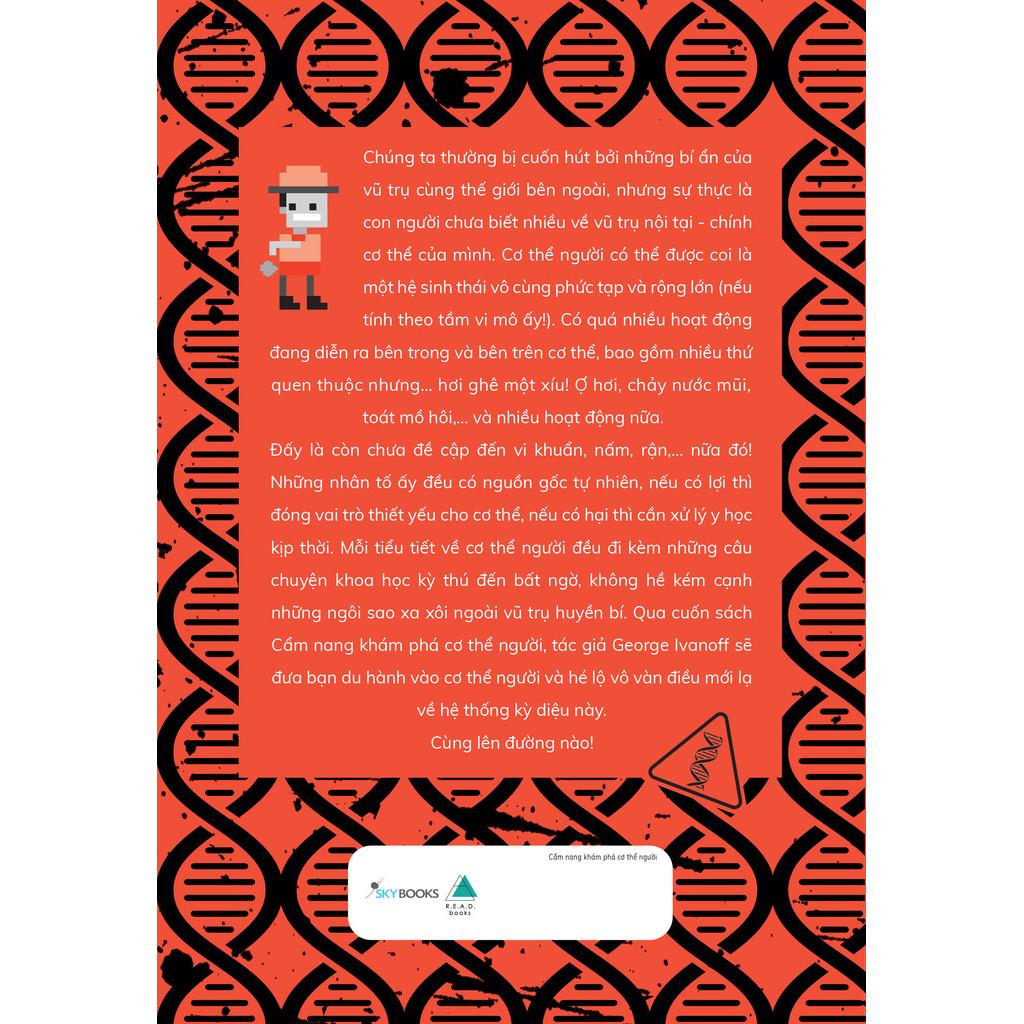 “Cẩm nang khám phá cơ thể người” giúp bạn nhận ra cơ thể người có thể được coi là một hệ sinh thái vô cùng phức tạp và rộng lớn. Cuốn sách truyền đạt những câu chuyện khoa học kỳ thú đến bất ngờ, không hề kém cạnh những ngôi sao xa xôi ngoài vũ trụ huyền bí. Qua cuốn sách Cẩm nang khám phá cơ thể người, tác giả George Ivanoff sẽ đưa bạn du hành vào cơ thể người và hé lộ vô vàn điều mới lạ về hệ thống kỳ diệu nà