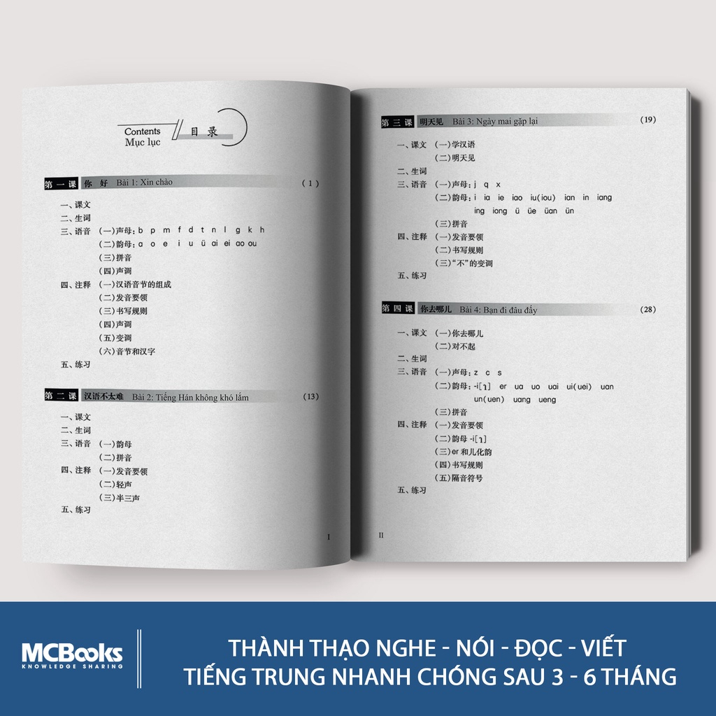 Các bài học trong “Giáo trình Hán ngữ 2 Tập 1 Quyển hạ phiên bản 3″ được Mcbooks thiết kế như sau: 1. Bài đọc, 2. Từ mới, 3. Chú thích, 4. Ngữ âm, Ngữ