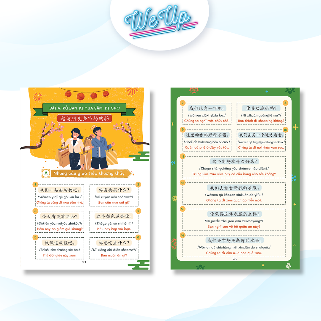 Mỗi bài học đi kèm với các hội thoại mẫu, giúp người học thực hành và ứng dụng ngay lập tức. Những hội thoại này được minh họa bằng hình ảnh thân thiện và màu sắc rực rỡ, làm cho việc học trở nên thú vị và dễ dàng hơn.