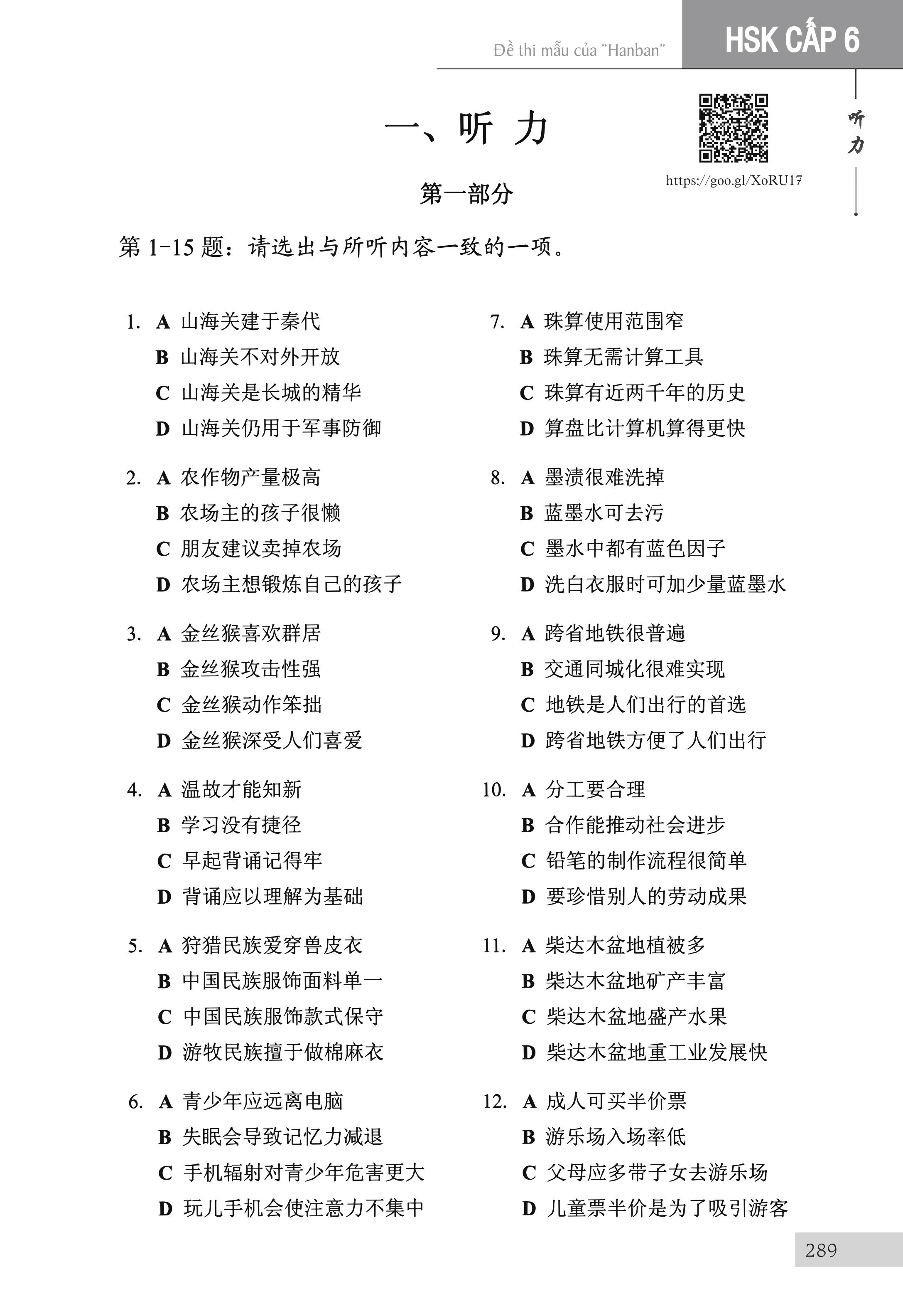 Bộ Đề Luyện Thi YCT - Cấp Độ 1 (Quét Mã QR Để Nghe File MP3) Ngày nay, rất nhiều quốc gia và khu vực trên thế giới có ngôn ngữ mẹ đẻ không phải
