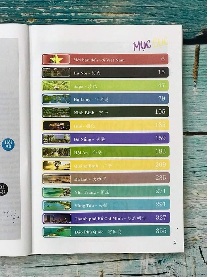 - Liệt kê, giới thiệu đầy đủ hàng trăm cảnh điểm và ẩm thực đặc trưng của các vùng du lịch trải dài từ Bắc tới Nam (với những vùng du lịch trọng điểm nhiều khách Trung sẽ được giới thiệu chi tiết hơn)
