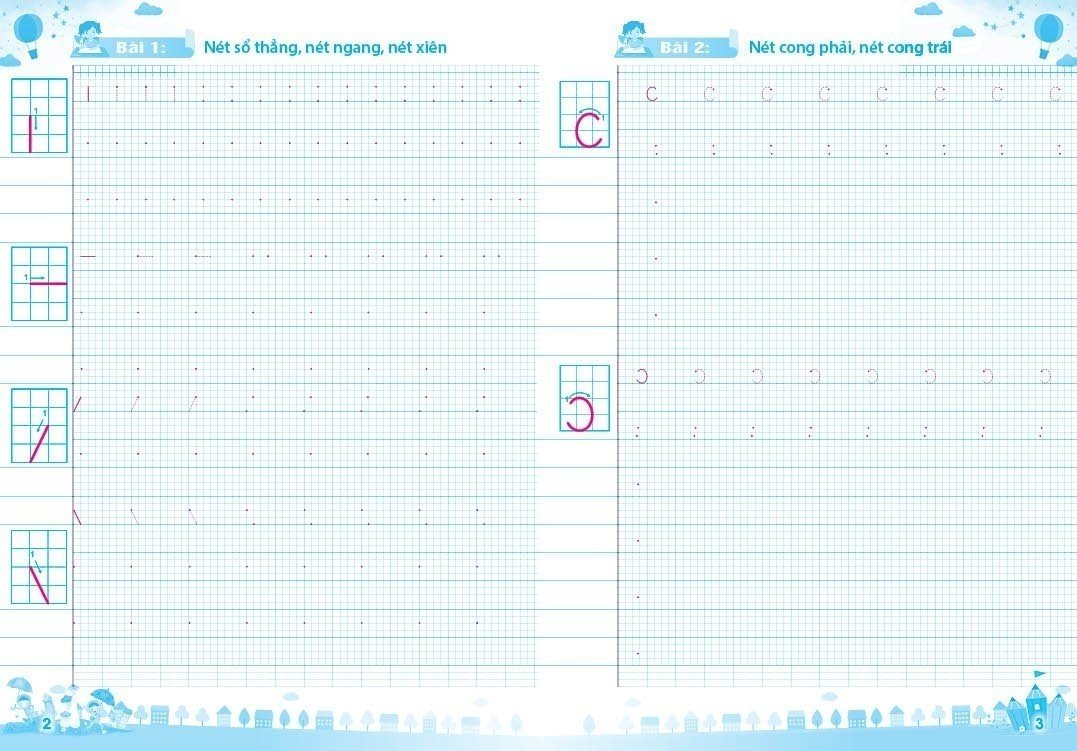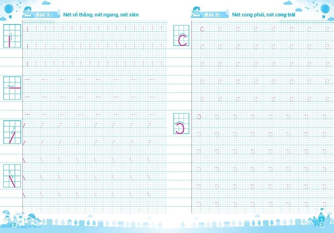 Luyện Viết Nét Cơ Bản Và Chữ Số - Vở Ô Li Có Chữ Mẫu - Bé Chuẩn Bị Vào Lớp 1 Nội dung mỗi cuốn sách giúp bé rèn luyện những kĩ năng khác