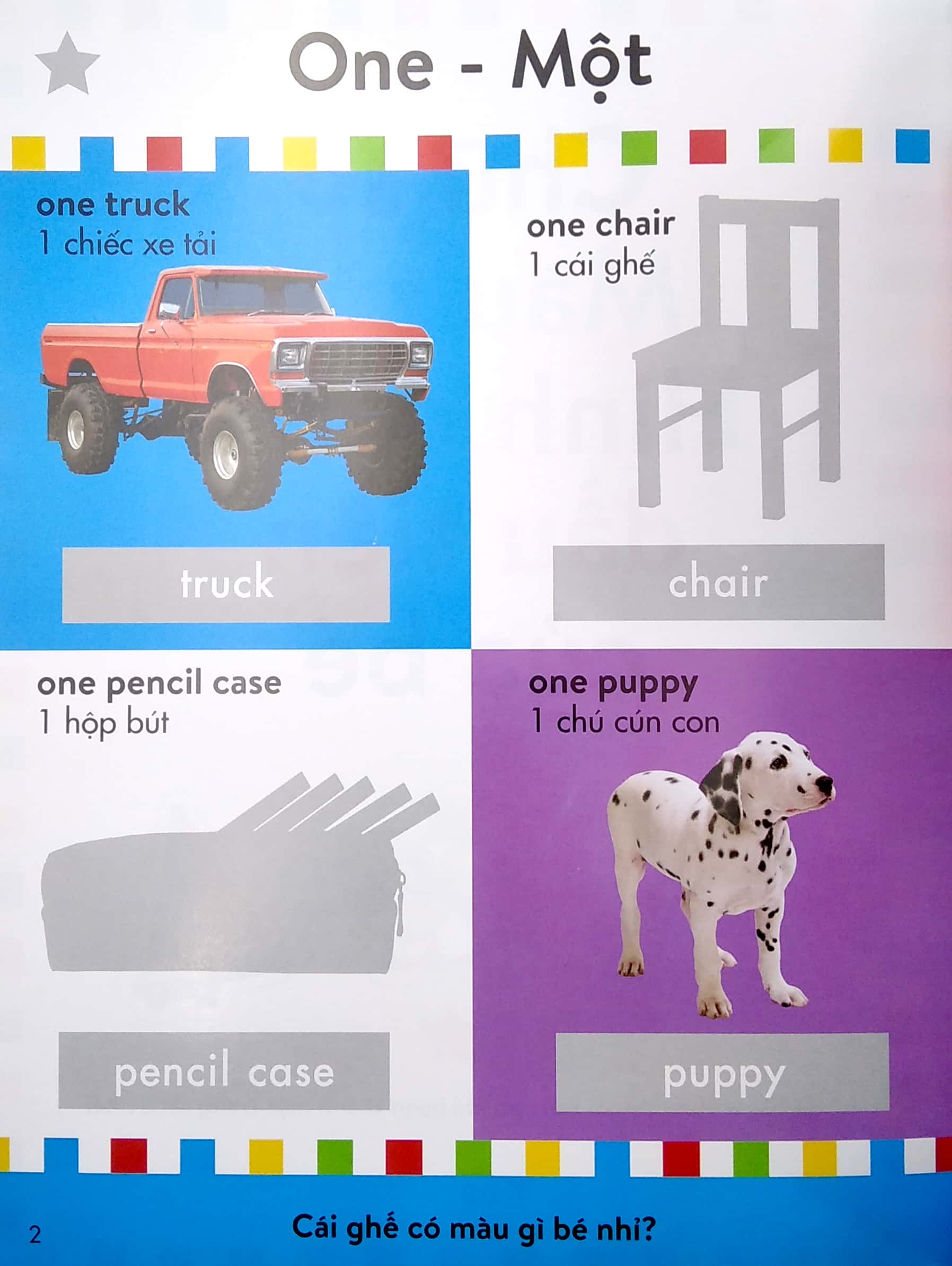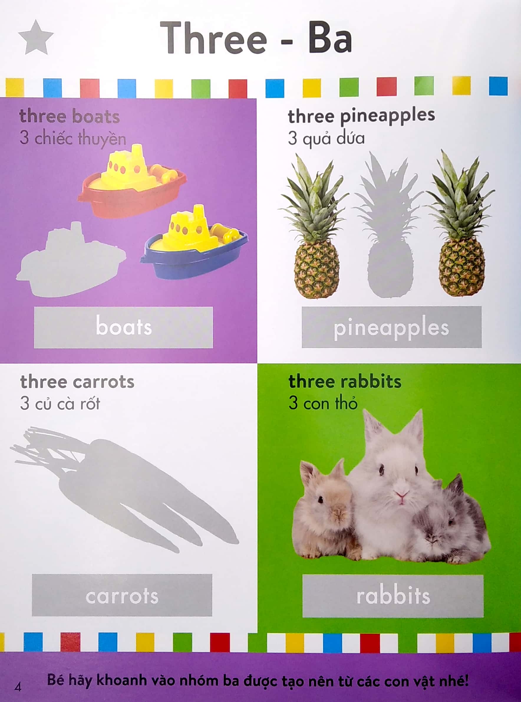 Điểm cộng của bộ sách này còn là yếu tố song ngữ Anh - Việt hấp dẫn, giới thiệu những từ vựng, hình ảnh, kiến thức cơ bản, gần gũi đầu tiên dành cho bé.