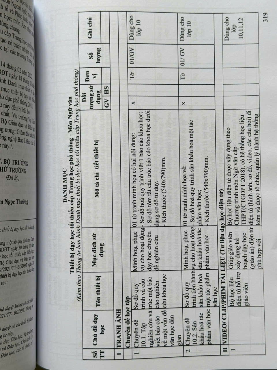 Sách Danh Mục Thiết Bị Dạy Học Tối Thiểu Trong Nhà Trường