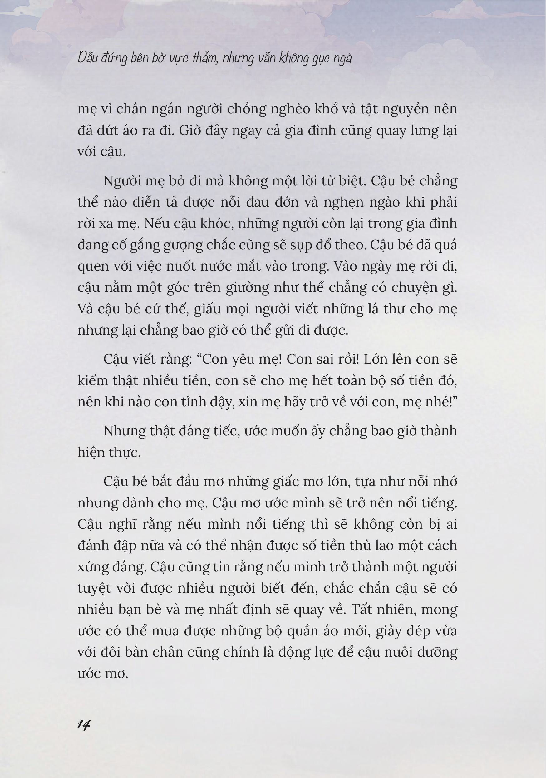 Thông qua những trang sách này, bạn sẽ tìm thấy những câu chuyện thật sự ý nghĩa, những bài học quý giá về sức mạnh tinh thần, sự kiên cường, và khả năng hồi phục. Đừng bao giờ từ bỏ, dù có đứng ở bờ vực thẳm, bởi chỉ cần bạn còn hy vọng, bạn sẽ tìm thấy con đường đi tiếp.
