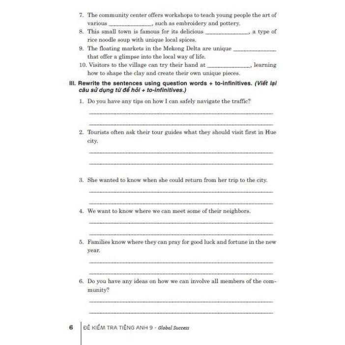 Cuốn sách “Đề kiểm tra tiếng Anh 9” được biên soạn bám sát sách giáo khoa Tiếng Anh 9 thuộc bộ Kết nối tri thức với cuộc sống (Global Success)