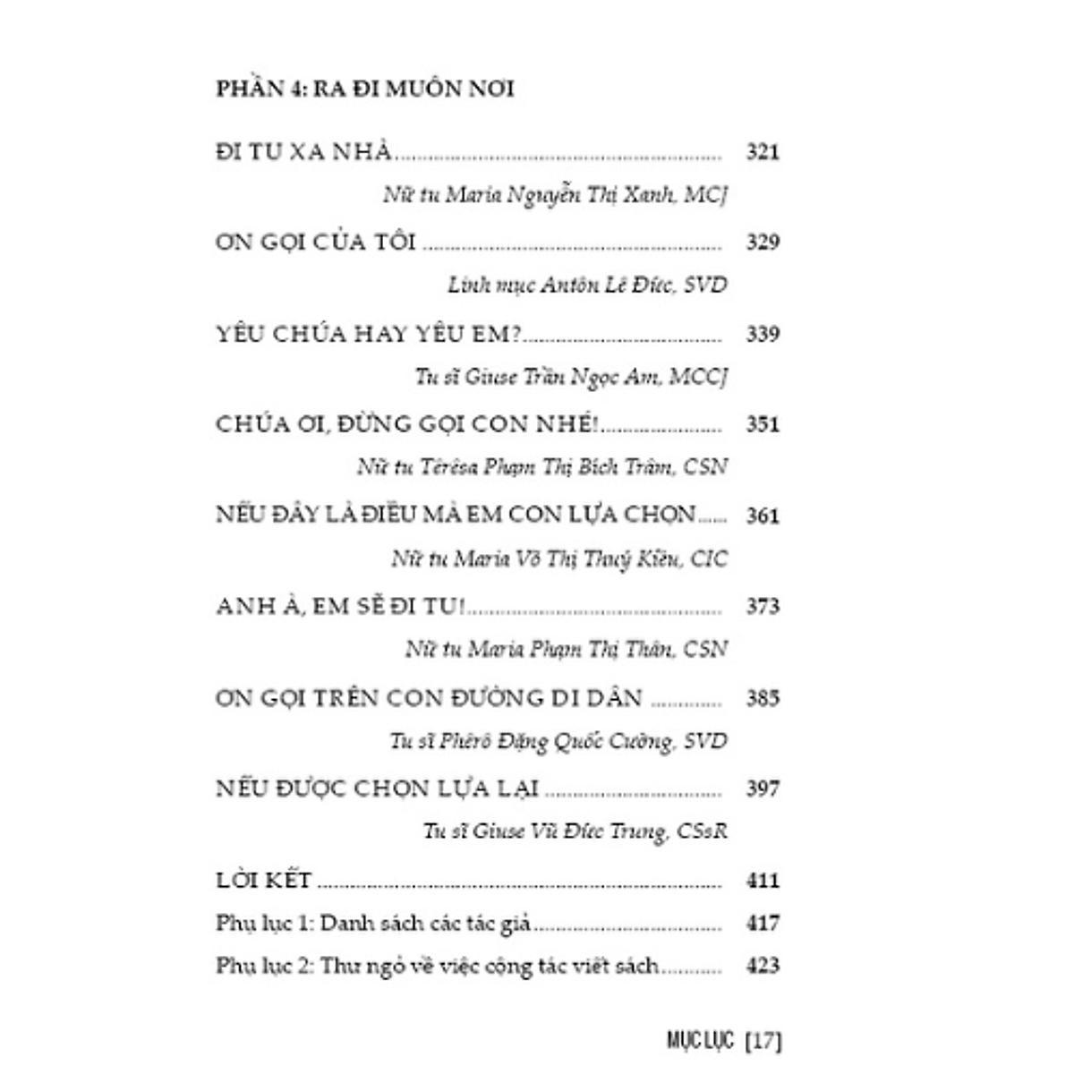 Người đi tu thường được mọi người quan tâm đặt những câu hỏi chẳng hạn như: “Tại sao cha (thầy, sơ) lại đi tu?” hoặc “Làm sao để biết được mình có ơn gọi đi tu?” Cũng có rất nhiều bạn trẻ đang phân vân lưỡng lự trước lời mời gọi bước vào đời sống tu trì, tận hiến cho Chúa và phục vụ tha nhân. Và ngay cả khi đã can đảm dấn thân, nói lời “xin vâng,” họ vẫn sẽ phải đối diện với rất nhiều khó khăn trên những bước chân chập chững đầu tiên của hành trình theo đuổi ơn gọi. Không phải ai cũng vượt qua được những giai đoạn sơ khởi này! Vì thế, nếu có ai đó chia sẻ cho họ nghe những kinh nghiệm làm sao nhận ra tiếng Chúa gọi và bền đỗ trong đời tu thì sẽ thật tốt biết bao.