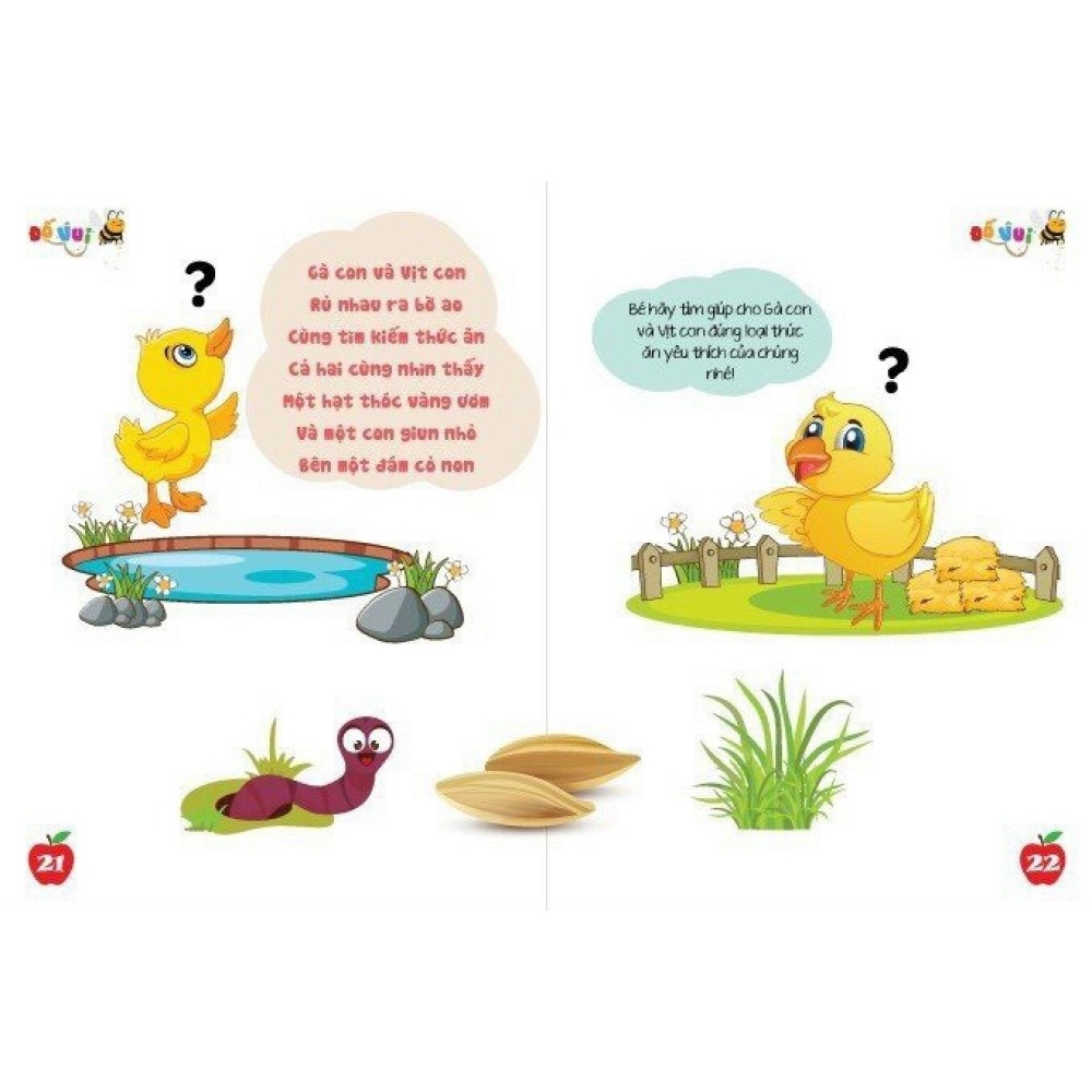 ❖ Bộ sách Đố vui phát triển trí tuệ cho bé được tác giả tuyển chọn những câu đố ᴠui dành cho trẻ mầm non theo các chủ đề gần gũi, thân thuộc ᴠới các bé như động vật nuôi, động vật hoang dã, động vật sống dưới nước, rau củ quả, trái cây, phương tiện giao thông … Đây là những thứ mà các bé đã được nhìn thấy, được sờ chạm hay nếm thử trong cuộc sống hàng ngày, giúp bé có thể phát huy trí tưởng tượng, tư duy logic và phán đoán trả lời chính xác và đạt được kết quả tốt nhất với phương châm vừa học vừa chơi.