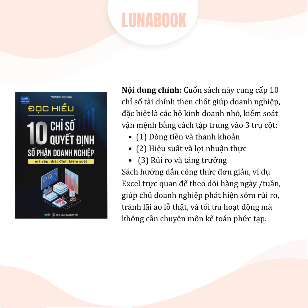 Đọc hiểu 10 chỉ số quyết định số phận doanh nghiệp là cẩm nang thiết thực dành cho chủ doanh nghiệp, nhà quản lý, và bất kỳ ai muốn nắm vững sức khỏe tài chính của công ty mà không cần giỏi kế toán. Cuốn sách sẽ giúp bạn: