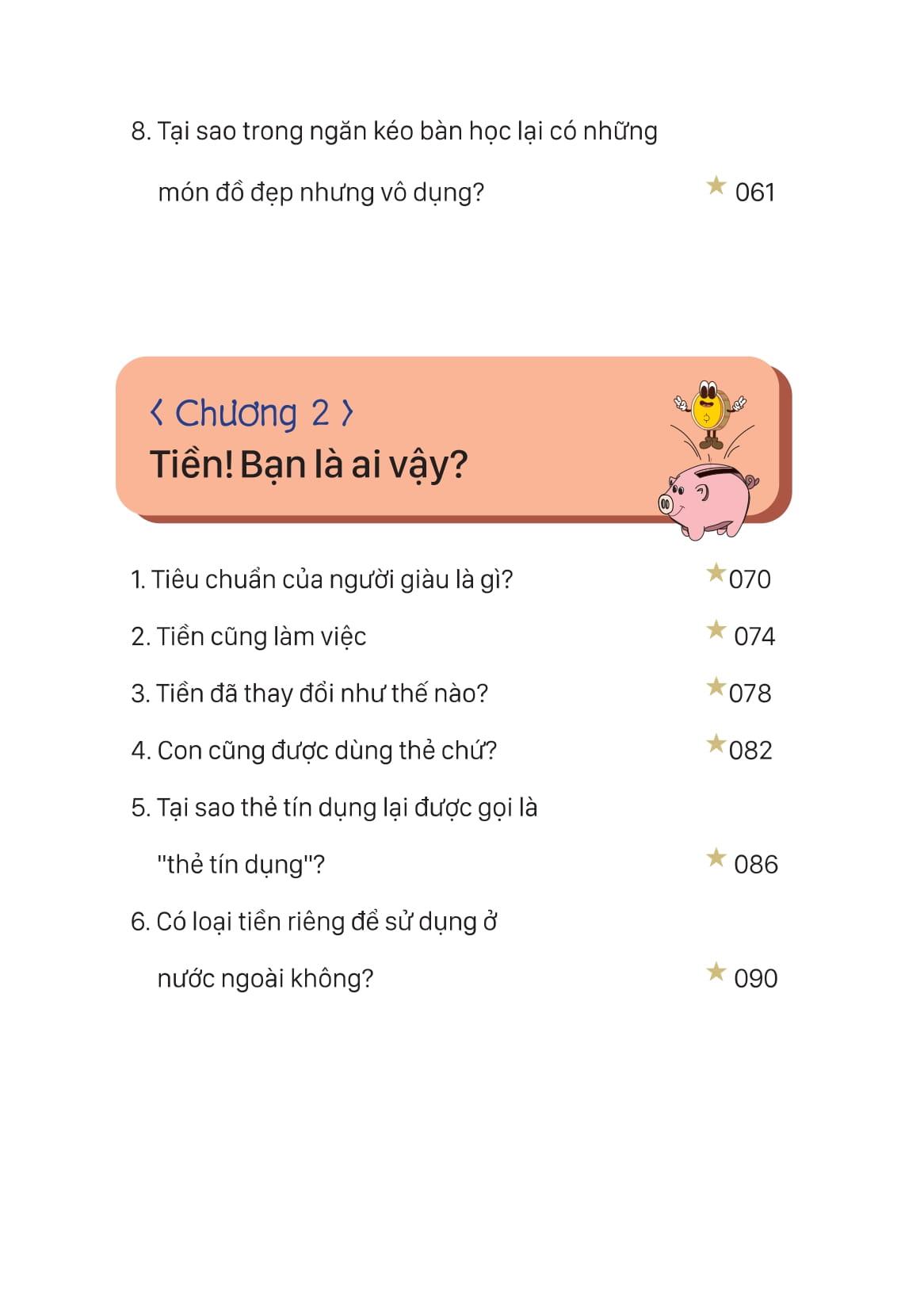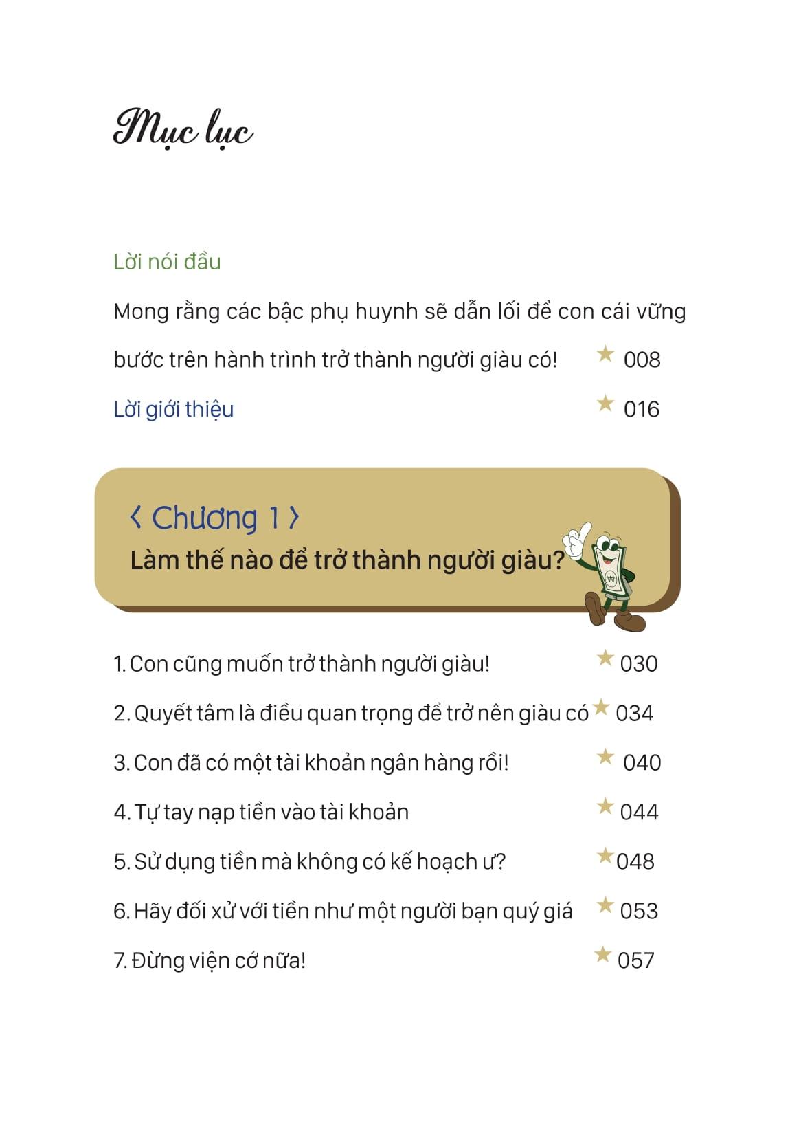 Mục lục của cuốn sách Đồng tiền vận hành ra sao? 5 bước hình thành tư duy tài chính cho trẻ