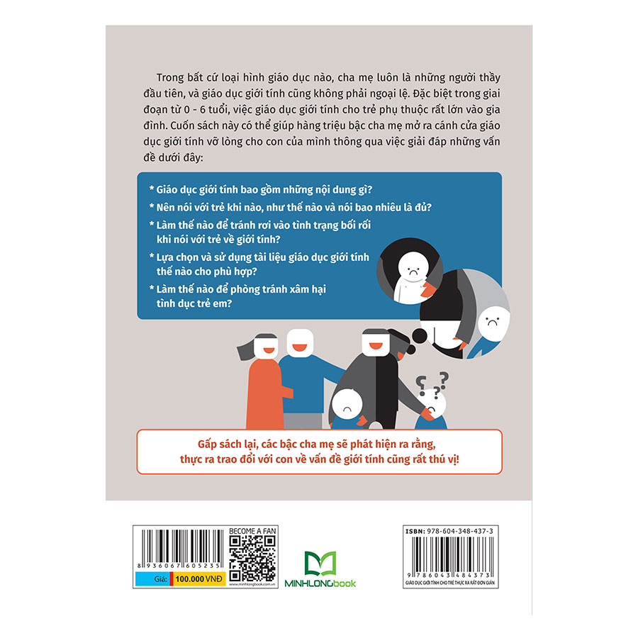 Giáo dục giới tính không chỉ đơn thuần là dạy những kiến thức liên quan đến sinh lí, vệ sinh, cũng không chỉ là giáo dục kĩ năng phòng tránh xâm hại. Nền tảng tâm lí của việc giáo dục giới tính chính là tình yêu mà cha mẹ dành cho con mình, là tình yêu giữa cha mẹ với nhau, là tình yêu giữa bạn bè với nhau. Trong bất cứ loại hình giáo dục nào, cha mẹ luôn là những người thầy đầu tiên và giáo dục giới tính cũng không phải là ngoại lệ. Đặc biệt, trong giai đoạn từ 0-6 tuổi, việc giáo dục giới tính cho trẻ phụ thuộc rất lớn vào gia đình. Cuốn sách này có thể giúp hàng triệu bậc cha mẹ mở ra cánh cửa giáo dục giới tính vỡ lòng cho con của mình thông qua việc giải đáp những vấn đề dưới đây: