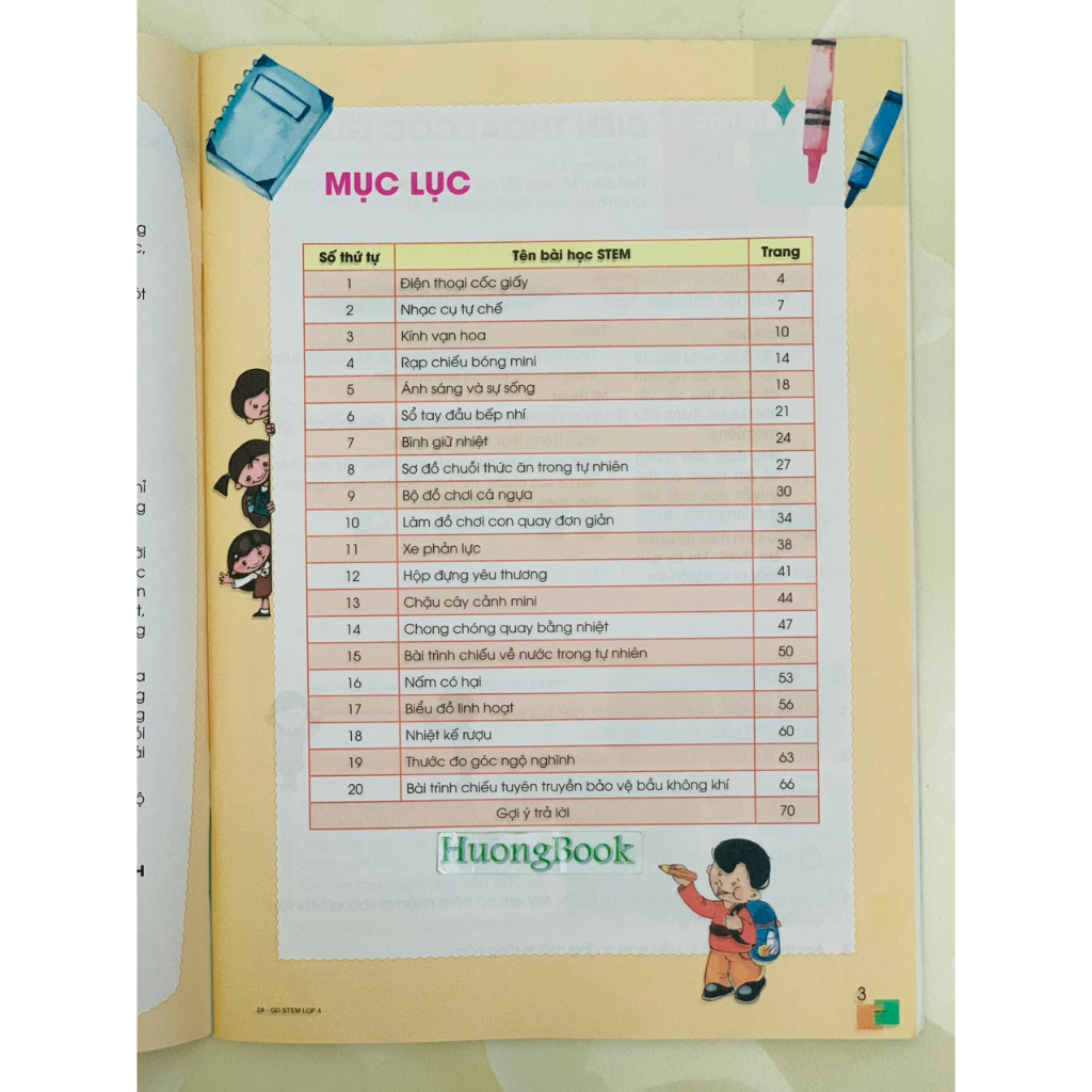 Cuối cùng, chúng tôi muốn lưu ý với các em rằng mục đích của chúng ta không chỉ là để tạo ra các sản phẩm STEM, mà là cùng nhau khám phá những điều thú vị trong thế giới khoa học đầy màu sắc. Vì vậy, các em hãy mở rộng trí tưởng tượng, khả năng tư duy của mình, không dừng lại ở những câu hỏi gợi mở hay những gợi ý về sản phẩm trong sách để tiếp tục tìm tòi những giải pháp mới cho các vấn đề được nêu trong mỗi bài học.