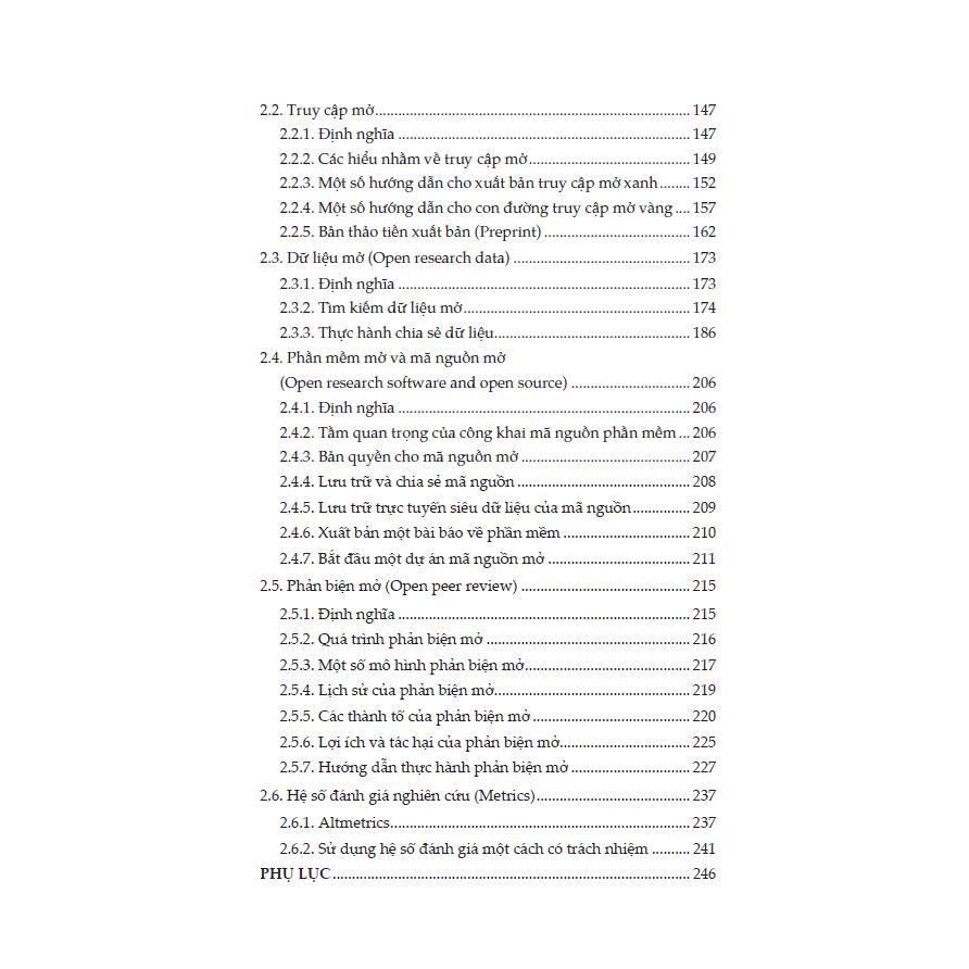 Ngoài ra, để đáp ứng nhu cầu của các cơ sở giáo dục và các tổ chức về việc giới thiệu, đào tạo, bồi dưỡng về giáo dục mở và khoa học mở, cuốn sách cũng cung cấp tại Phụ lục một đề cương khóa đào tạo ngắn ngày (4 buổi) về nội dung này.