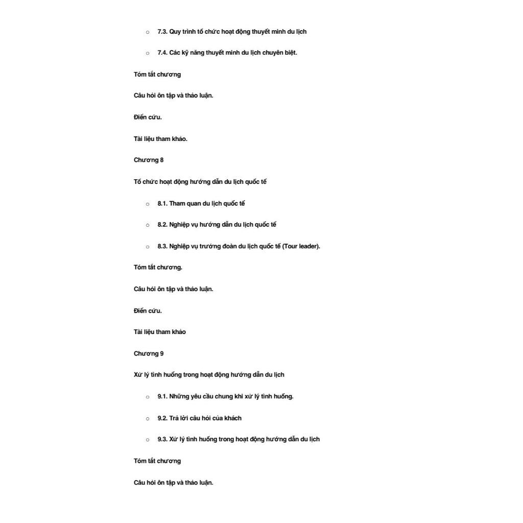 vụ hướng dẫn du lịch được biên soạn nhằm đáp ứng nhu cầu học tập, trước hết của sinh viên ngành Du lịch tại Học viện Hàng không Việt Nam, cũng như các Trường Đại học trong Thành phố Hồ Chí Minh và trên toàn quốc, cũng như đáp ứng nhu cầu tham khảo của độc giả, giới doanh nhân nói chung, và của những người đang làm việc trong ngành Du lịch nói riêng.