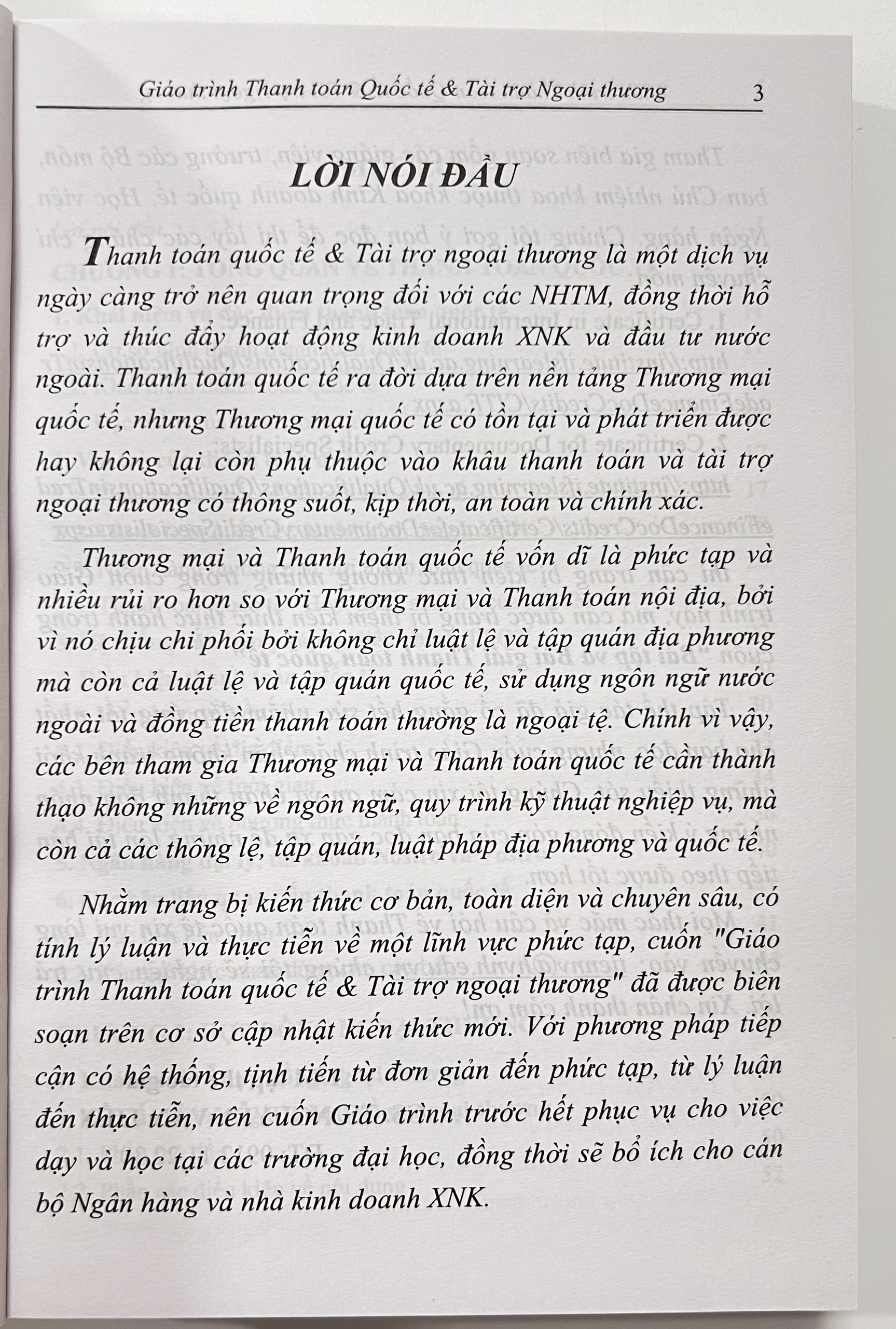Cuốn sách tài chính GIÁO TRÌNH THANH TOÁN QUỐC TẾ & TÀI TRỢ NGOẠI THƯƠNG (INCOTERMS 2020 - UCP 600) đã biên soạn trên cơ sở cập nhật kiến thức mới. Với phương pháp tiếp cận có hệ thống, tịnh tiến từ đơn giản đến phức tạp, từ lý luận đến thực tiễn , nên cuốn sách trước hết phục vụ cho việc dạy và học tại các trường đại học , đồng thơi sẽ bổ ích cho cán bộ Ngân hàng và nhà kinh doanh XNK..