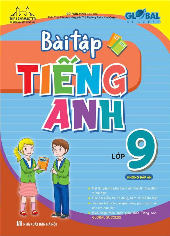 Global Success - Bài Tập Tiếng Anh Lớp 9 - Không Đáp Án Với mong muốn giúp các em học sinh củng cố và mở rộng kiến thức ngôn ngữ trong chương trình Tiếng Anh lớp 9, chúng tôi đã biên soạn cuốn sách BÀI TẬP TIẾNG ANH LỚP 9. Các dạng bài tập phong phú, đa dạng, bám sát ngữ pháp và từ vựng theo chủ đề từng đơn vị bài học.