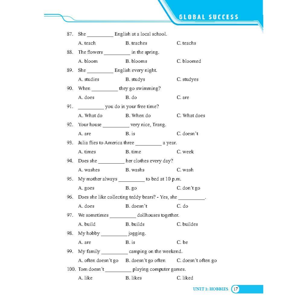 GLOBAL SUCCESS - Bài tập trắc nghiệm tiếng anh lớp 7 tập 1 (có đáp án)
