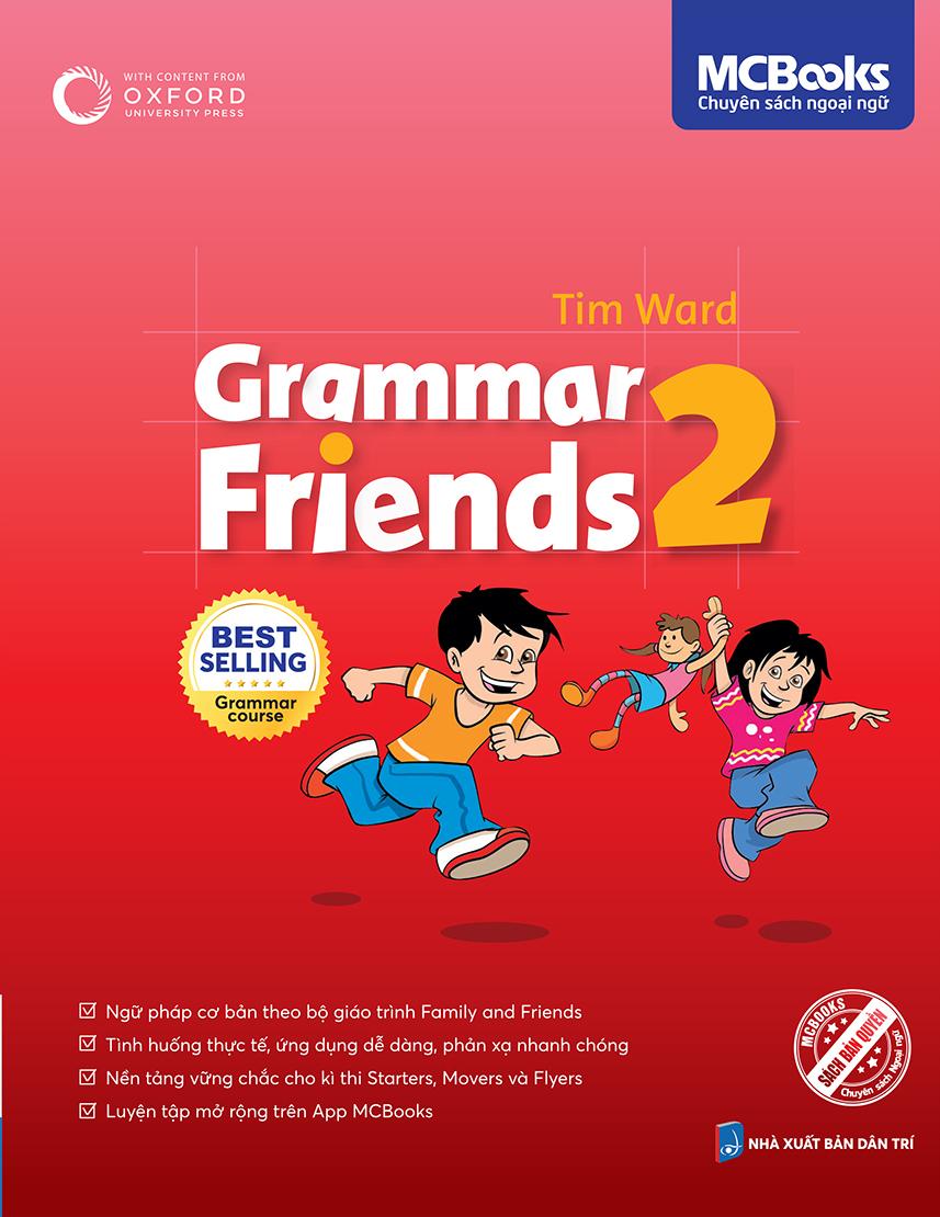 - Có phần ôn tập sau mỗi 3 unit giúp củng cố lại kiến thức đã học. Tại Sao Cuốn Sách Này Nên Đọc Nếu bạn đang tìm một cuốn sách ngữ pháp tiếng Anh dành cho trẻ nhỏ dễ hiểu, bài bản và giàu hình ảnh, thì “Grammar Friends 2” là lựa chọn không thể bỏ qua. Sách giúp học sinh làm chủ những kiến thức ngữ pháp cơ bản nhất một cách tự nhiên và logic, tạo nền tảng vững chắc cho việc học tiếng Anh sau này.