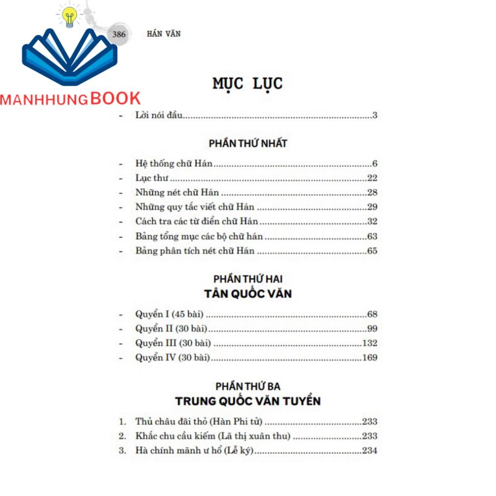 Công ty Học Liệu Sư Phạm giới thiệu: Hán văn là văn ngôn, thường được gọi là tiếng Hán cổ, phân biệt với bạch thoại, là tiếng Hán hiện đại. Nhưng nhiều sách Trung Quốc hiện nay vẫn còn được viết bằng lối văn này; và ngay cả trong văn bạch thoại cũng còn thấy dùng nhiều ngữ cú của văn ngôn. Biết Hán văn, học bạch thoại sẻ dễ dàng hơn.