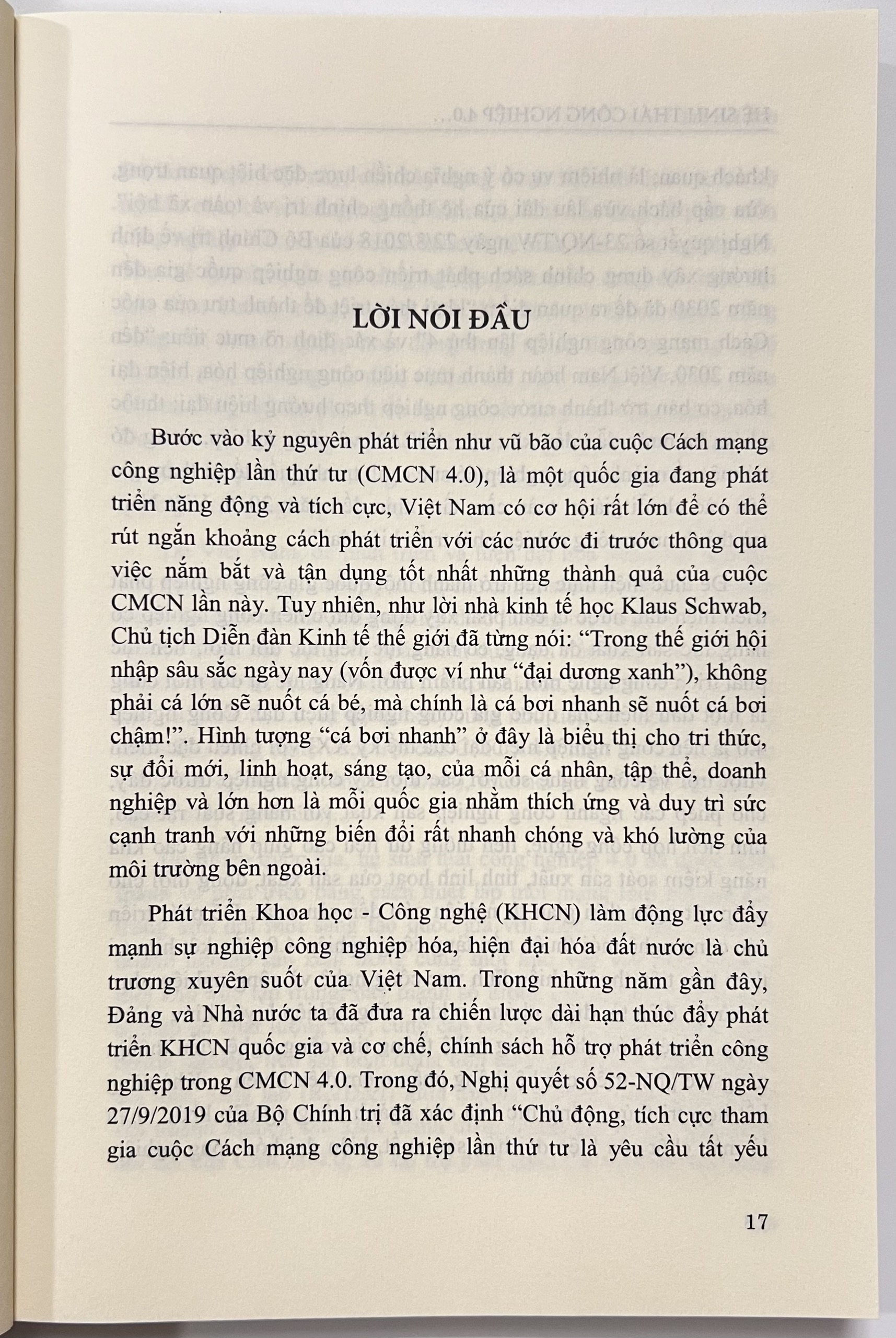 Bước vào kỷ nguyên phát triển vũ bão của cuộc Cách mạng công nghiệp 4.0 (CMCN 4.0), là một quốc gia đang phát triển năng động và tích cực, Việt Nam có cơ hội rất lớn để có thể rút ngắn khoảng cách phát triển với các nước đi trước thông qua việc nắm bắt và tận dụng tốt nhất những thành quả của cuộc CMCN lần này. Phát triển KHCN làm động lực đẩy mạnh sự nghiệp công nghiệp hóa, hiện đại hóa đất nước là chủ trương xuyên suốt của Việt Nam. Trong những năm gần đây, Đảng và Nhà nước ta đã đưa ra chiến lược dài hạn thúc đẩy phát triển KHCN quốc gia và cơ chế, chính sách hỗ trợ phát triển công nghiệp trong CMCN 4.0.