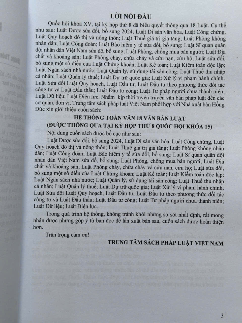 Sách Hệ Thống Toàn Văn 18 Văn Bản Luật được thông qua tại Kỳ họp thứ 8, Quốc hội khóa 15
