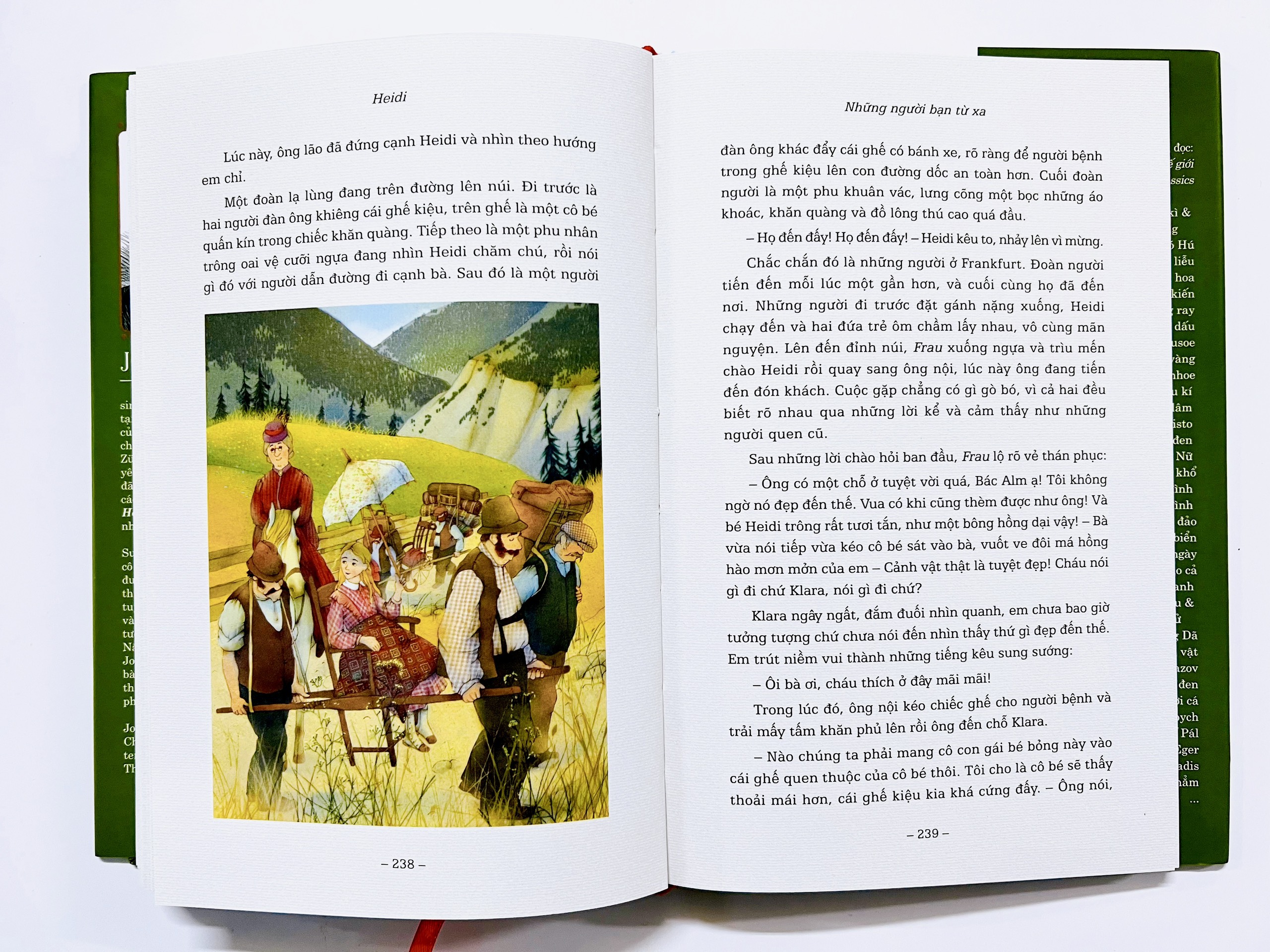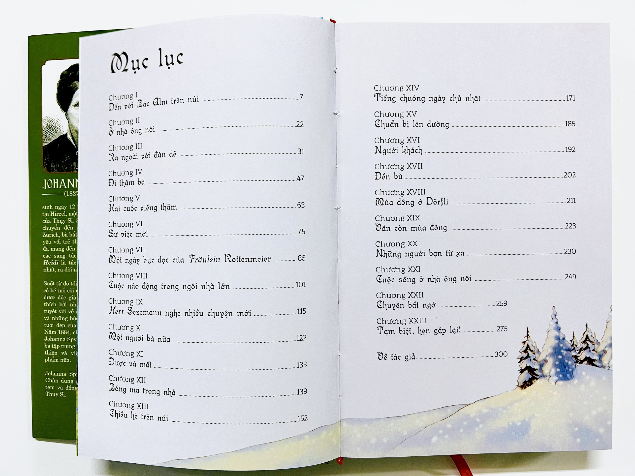 Cuốn sách kinh điển của Johanna Spyri đã được Đông A xuất bản với bản dịch được yêu thích của dịch giả Thanh Vân, minh họa của Elena Selivanova. Sách in màu, bìa cứng, có bìa áo.