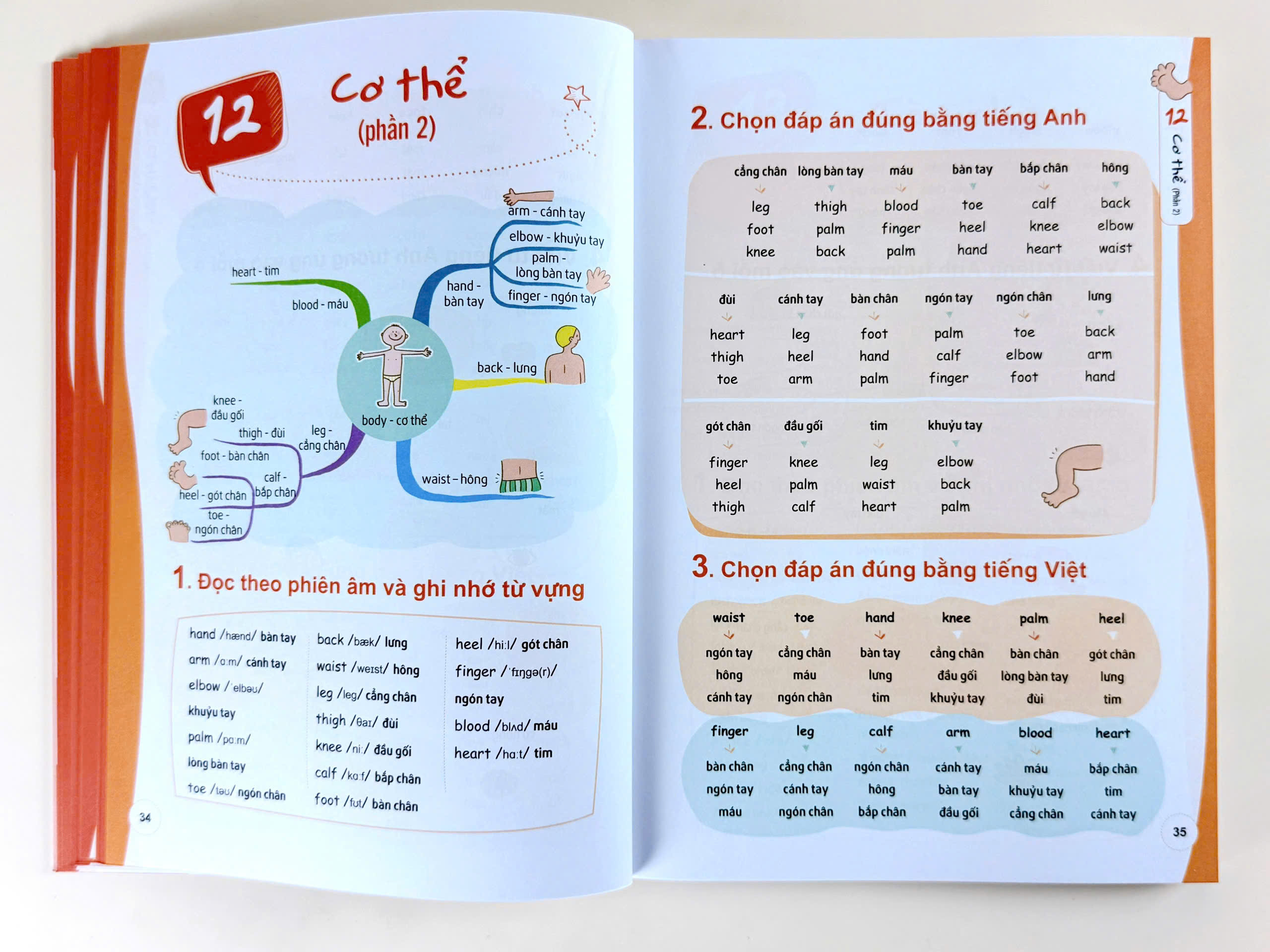- Hình thức: Bìa mềm Bao gồm 62 chủ đề đa dạng, từ vựng phong phú Phân chia từ vựng theo 62 chủ đề phổ biến trong cuộc sống và giao tiếp hằng ngày như: Home (Ngôi nhà), School (Trường học), Travel (Du lịch), Health (Sức khỏe), Shopping (Mua sắm)… Giúp học nhanh hơn, nhớ lâu hơn nhờ cách trình bày khoa học theo sơ đồ tư duy. Phát âm chuẩn ngay từ đầu với phần phiên âm rõ ràng. Nâng cao khả năng phản xạ từ vựng thông qua hệ thống bài tập thực hành đa dạng.