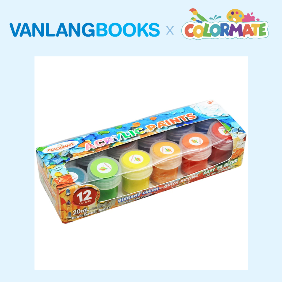 Sách Học Vẽ Tranh Màu Nước + Hộp 12 Màu Vẽ Acrylic 20ml - Vanlangbooks x Colormate
