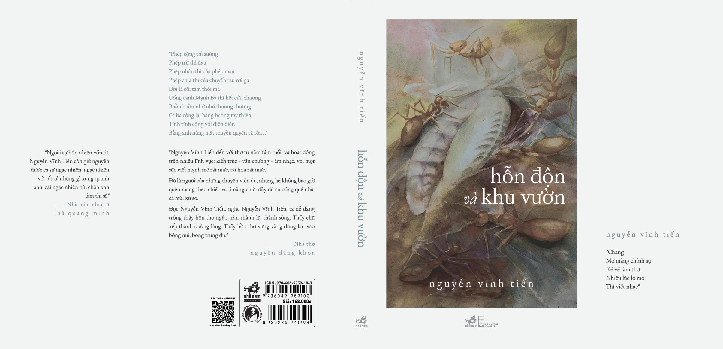 "Nguyễn Vĩnh Tiến đến với thơ từ năm tám tuổi, và hoạt động trên nhiều lĩnh vực: kiến trúc - văn chương - âm nhạc, với một sức viết mạnh mẽ rất mức, tài hoa rất mực.