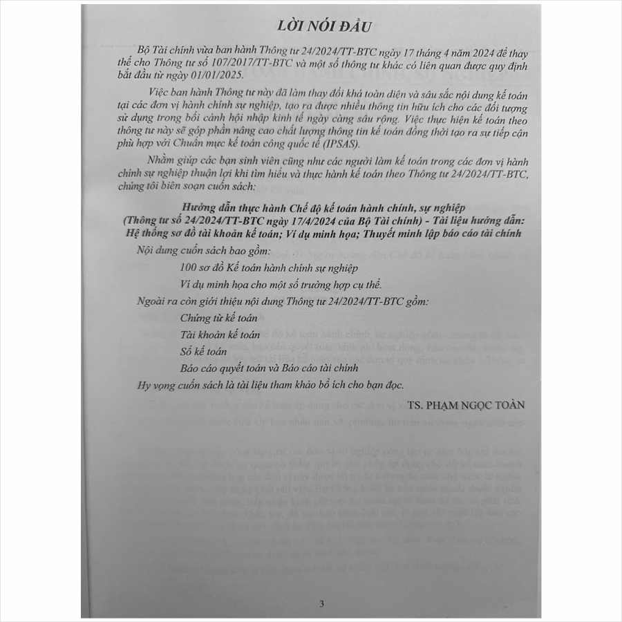 Sách Hướng Dẫn Thực Hành Chế Độ Kế Toán Hành Chính, Sự Nghiệp (Thông tư số 24/2024/TT-BTC ngày 17/4/2024 của Bộ Tài chính) – Tài liệu hướng dẫn: Hệ thống sơ đồ tài khoản kế toán; Ví dụ minh họa; Thuyết minh lập báo cáo tài chính (TS. Phạm Ngọc Toàn)
