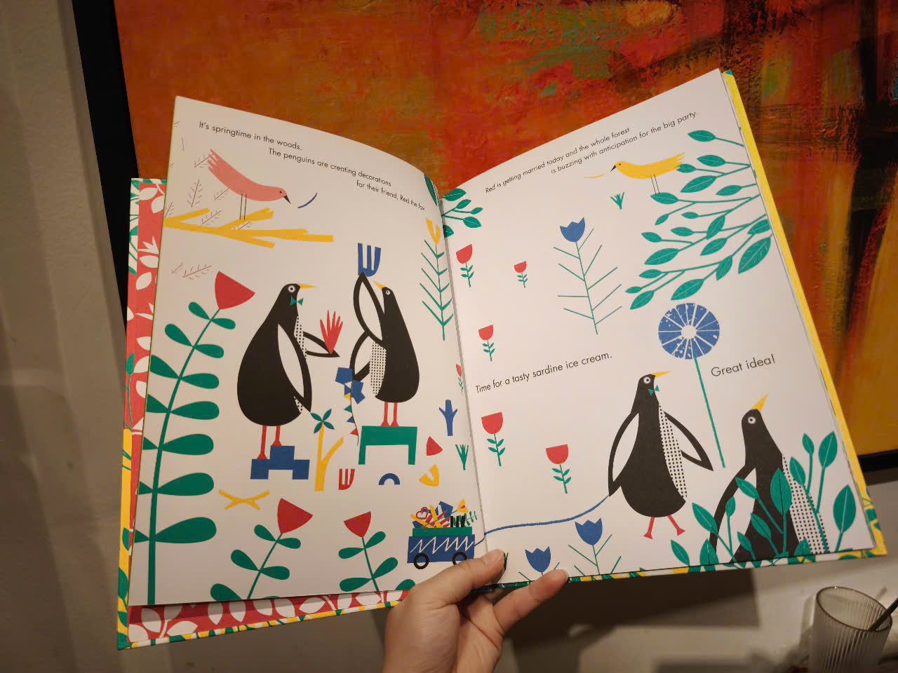 Hãy tham gia cùng chú ngựa Olly, chú sư tử Lionel, chú cáo Red và những người bạn của họ khi họ bắt đầu ba cuộc phiêu lưu trong khu rừng rực rỡ và kỳ ảo của Thereza Rowe. Có rất nhiều điều đang diễn ra trong khu rừng... Chú ngựa Olly đã chán ngán việc chờ đợi để biến thành kỳ lân giống như những người bạn của mình. Chú sư tử Lionel vô cùng xấu hổ vì bị rụng tóc. Và chú cáo Red sẽ không ra khỏi hang vì chiếc bánh cưới mà cô đã dành nhiều giờ để chuẩn bị đã bị ăn hết. Trong ba câu chuyện liên kết này, Olly, Lionel, Red và những người bạn của họ cùng nhau tìm ra những giải pháp sáng tạo và thú vị cho các vấn đề của nhau, và mỗi câu chuyện kết thúc bằng cảnh các sinh vật hô vang "Hãy hạnh phúc ngay bây giờ!" Những hình minh họa kỳ quặc của Thereza Rowe vừa phong cách vừa hiện đại. Kết hợp với những câu chuyện lạc quan này, chúng có một nguồn năng lượng phi thường sẽ hấp dẫn trẻ em và cha mẹ của chúng. Được minh họa bằng màu sắc trong suốt