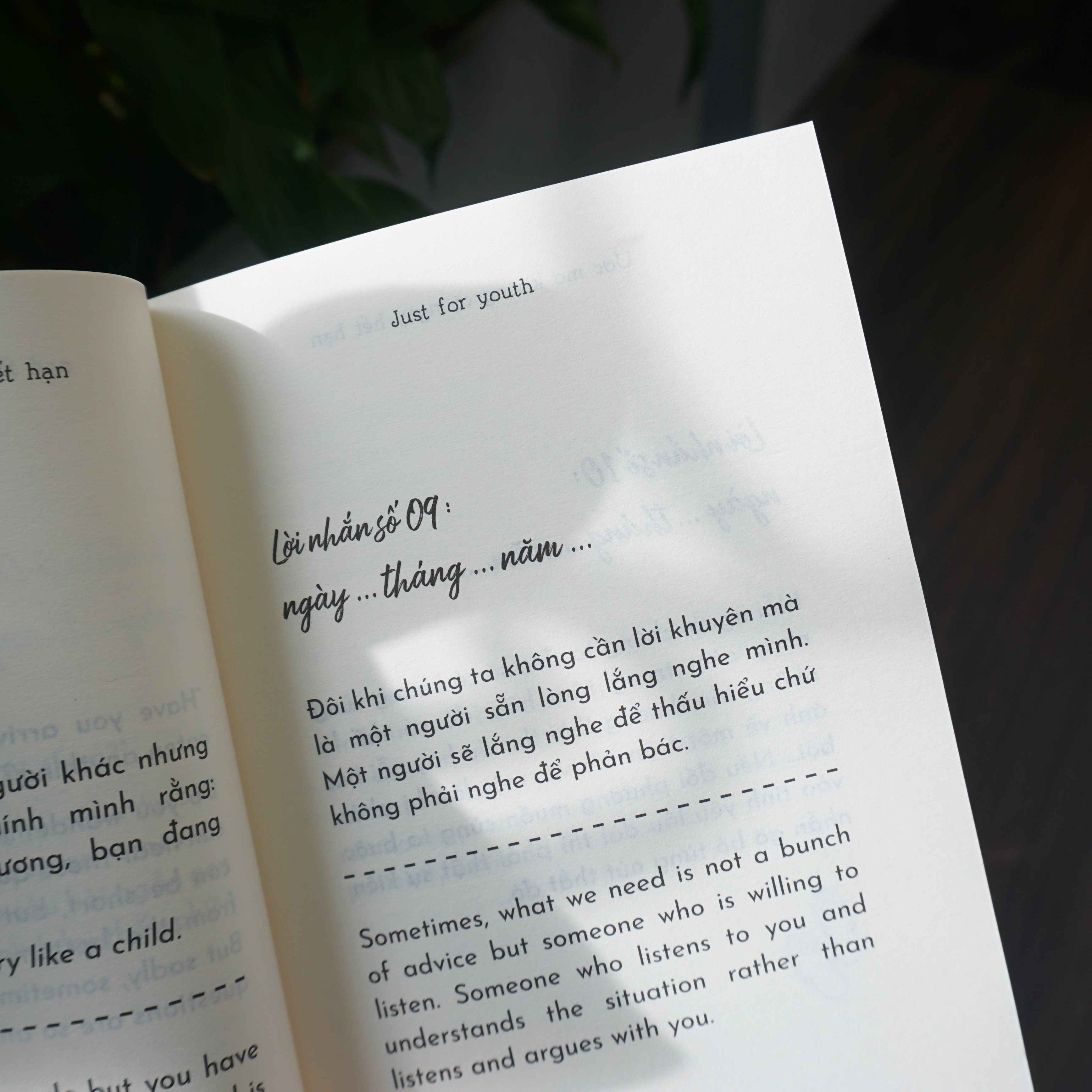 Cuốn sách song ngữ "Just for youth – Ước mơ không có ngày hết hạn" là một cuốn nhật ký cảm xúc được viết bằng 2 thứ tiếng Việt - Anh, bộc bạch nỗi lòng của những người trẻ đang đi trên hành trình tìm kiếm bản thân.