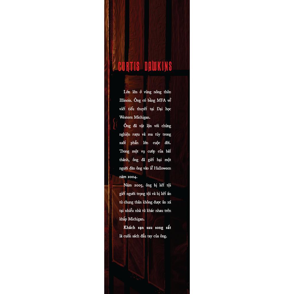 “Khách sạn sau song sắt” là tuyển tập bao gồm 14 truyện ngắn về cuộc sống trong tù của Curtis Dawkins - một cử nhân MFA về viết tiểu thuyết, đồng thời là kẻ giết người bị kết án chung thân. Trong cuốn sách đầy ám ảnh này, ông sẽ mô tả cuộc sống của chính mình và những người bạn tù bằng góc nhìn méo mó, tâm hồn khao khát tự do đến cháy bỏng.