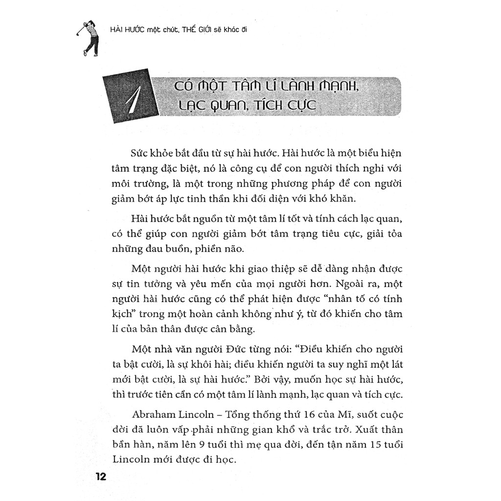 Hài hước một chút, thế giới sẽ khác đi - cuốn sách với nội dung phong phú mà sâu sắc này sẽ giúp các bạn có được cái nhìn rõ nét hơn về tính hài hước dưới các góc độ, phương diện đánh giá khác nhau, cũng như có thêm kĩ năng vận dụng sự hài hước vào cuộc sống hàng ngày.
