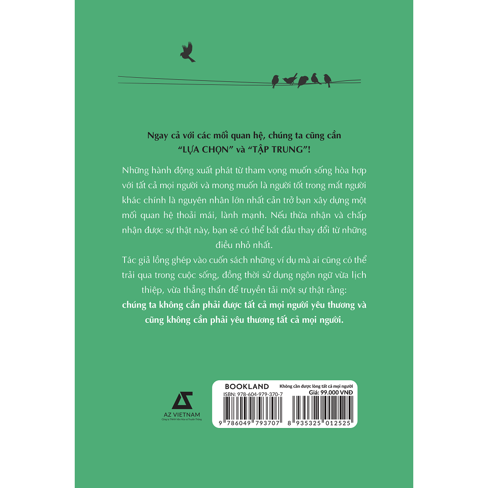 Đúng như tên gọi “Không cần được lòng tất cả mọi người”, thông điệp được tác giả truyền tải xuyên suốt cuốn sách là: bạn không cần được tất cả mọi người yêu thương và cũng không cần phải yêu thương tất cả mọi người.