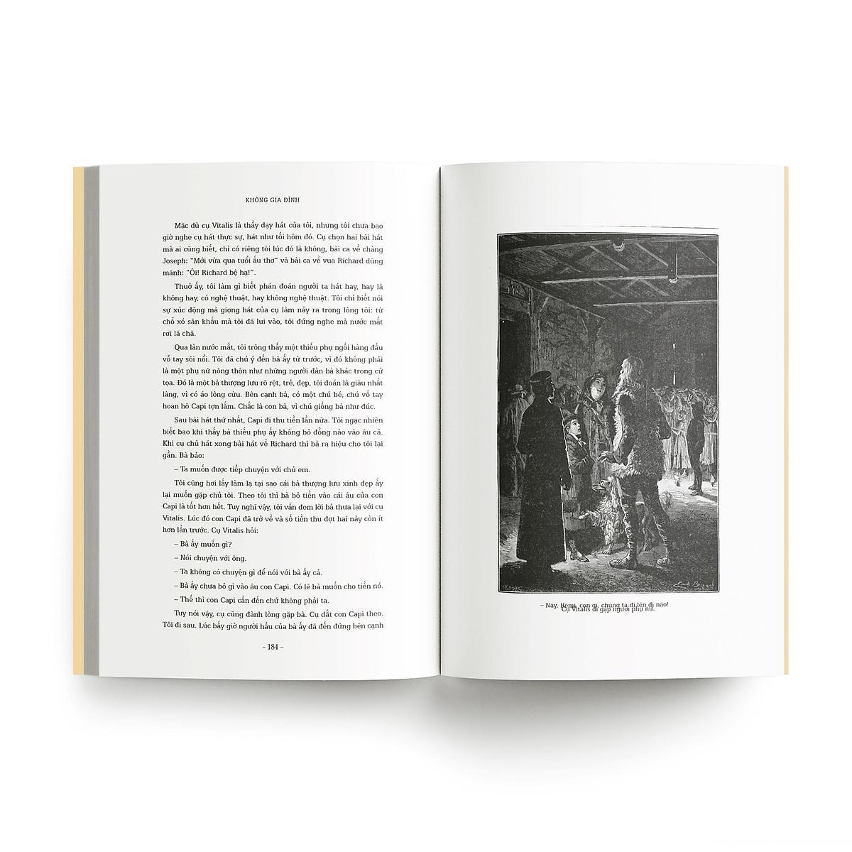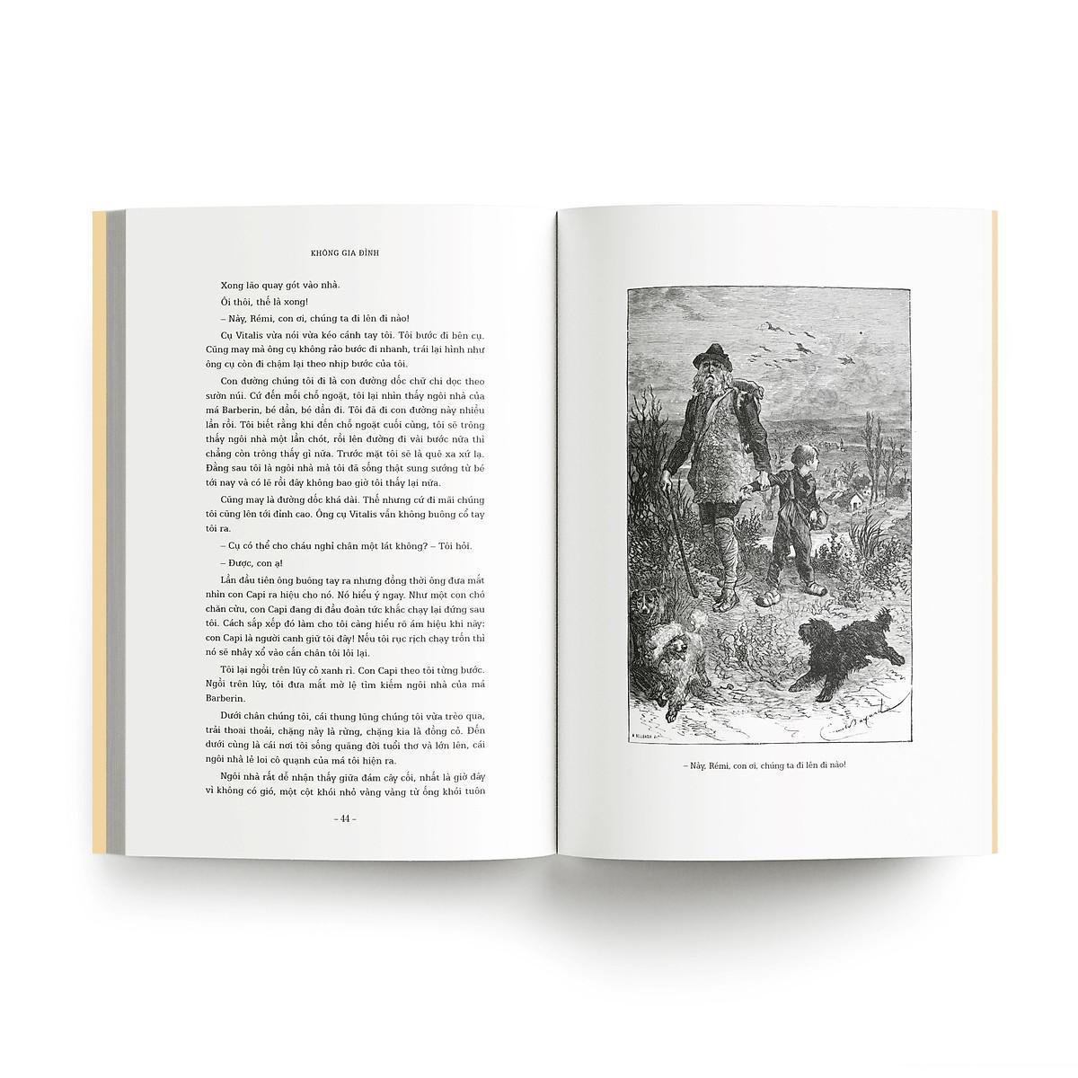 Không gia đình kể về chuyện đời Rémi, một cậu bé không cha mẹ, họ hàng thân thích. Sau khi phải rời khỏi vòng tay của người má nuôi, em đã đi theo đoàn xiếc thú của cụ già Vitalis tốt bụng. Kể từ đó, em lưu lạc khắp nơi, ban đầu dưới sự che chở của cụ Vitalis, sau đó thì tự lập và còn lo cả công việc biểu diễn và sinh sống cho cả một gánh hát rong. Đã có lúc em và cả đoàn lang thang cả mấy ngày đói khát rồi còn suýt chết rét. Có bận em bị lụt ngầm chôn trong giếng mỏ hàng tuần. Rồi có lần em còn mắc oan bị giải ra tòa và phải ở tù. Nhưng cũng có khi em được nuôi nấng đàng hoàng, no ấm. Song dù trong hoàn cảnh nào, Rémi vẫn giữ được sự gan dạ, ngay thẳng, lòng tự trọng, tính thương người, ham lao động chứ không hạ mình hay gian dối. Cuối cùng, sau bao gian nan khổ cực, em đã đoàn tụ được với gia đình của mình.