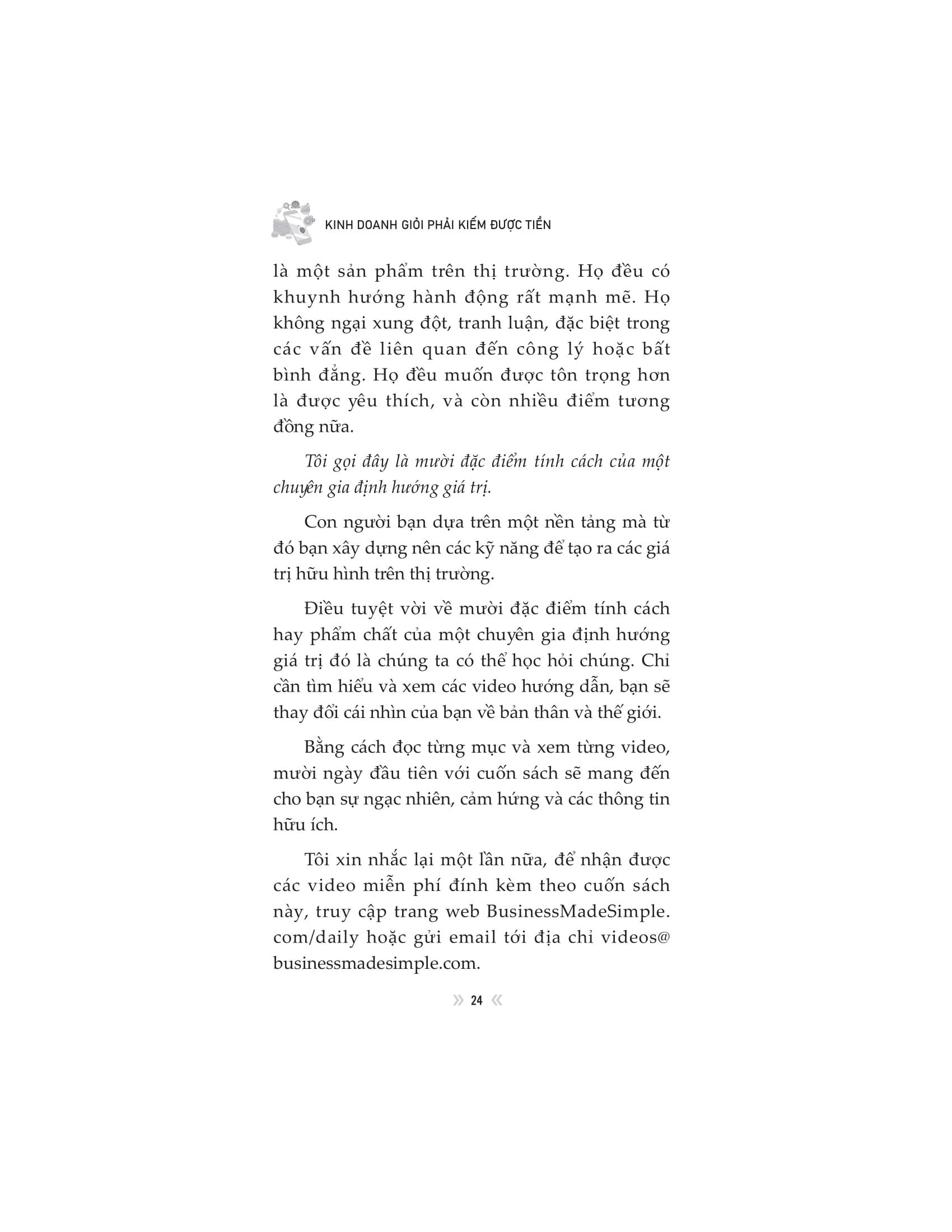 “Kinh doanh giỏi phải kiếm được tiền” – cuốn sách chứa đựng những bài học giá trị để phát triển sự nghiệp cá nhân và xây dựng một doanh nghiệp phát triển bền vững. Cuốn sách này tập trung vào 9 lĩnh vực mà những nhà lãnh đạo hay những người làm kinh doanh cần mài giũa và thông thạo, bao gồm: