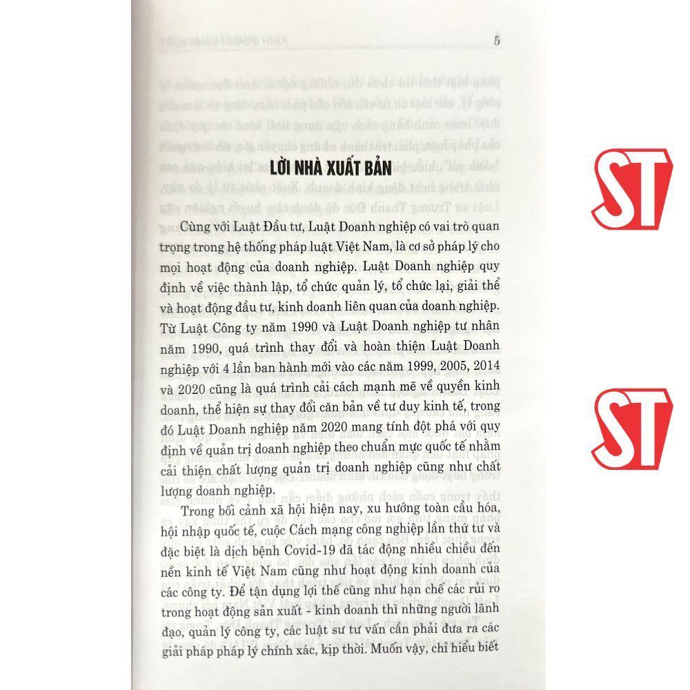 Nội dung cuốn sách tổng hợp, bình luạn những điều khoản quan trọng của Luật Doanh nghiệp năm 2020, sửa đổi, bổ sung năm 2022 cũng như các quy định liên quan giúp bạn đọc hệ thống hóa, nắm bắt được một cách toàn diện và khoa học các quy định pháp luật liên quan đến những vấn đề vướng mắc thường gặp trong hoạt động đầu tư, kinh doanh. Đặc biệt, bạn đọc sẽ tìm thấy trong cuốn sách những điểm cần lưu ý và những giải pháp mang tính gợi mở cho vấn đề cụ thể từng xảy ra trong thực tiễn. Bên cạnh đó, bằng việc so sánh giữa các quy định pháp luật qua các lần sửa đổi, bổ sung, bạn đọc sẽ có được cái nhìn hệ thống về tiến trình thay đổi, phát triển của Luật Doanh nghiệp nói riêng, pháp luật Việt Nam nói chung.