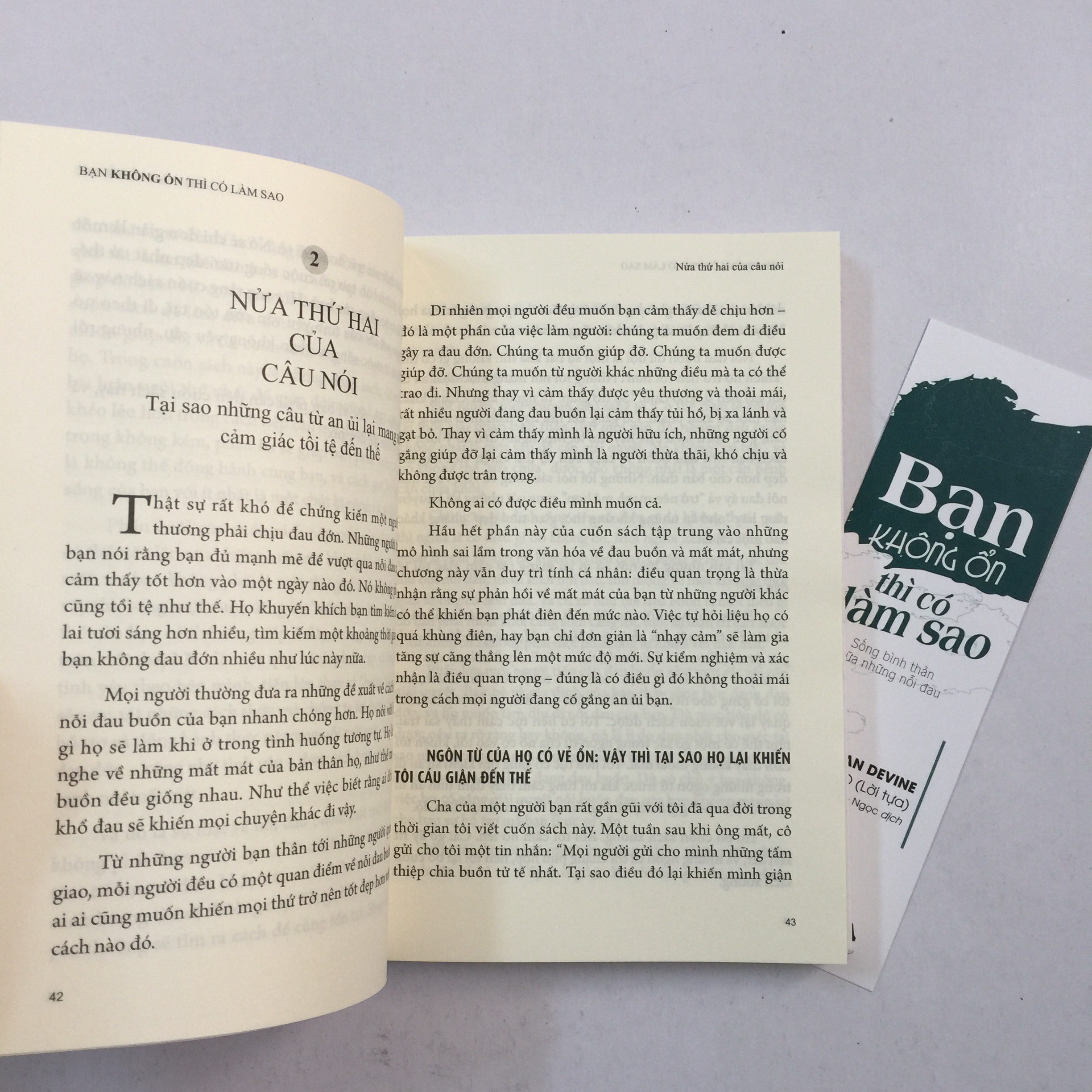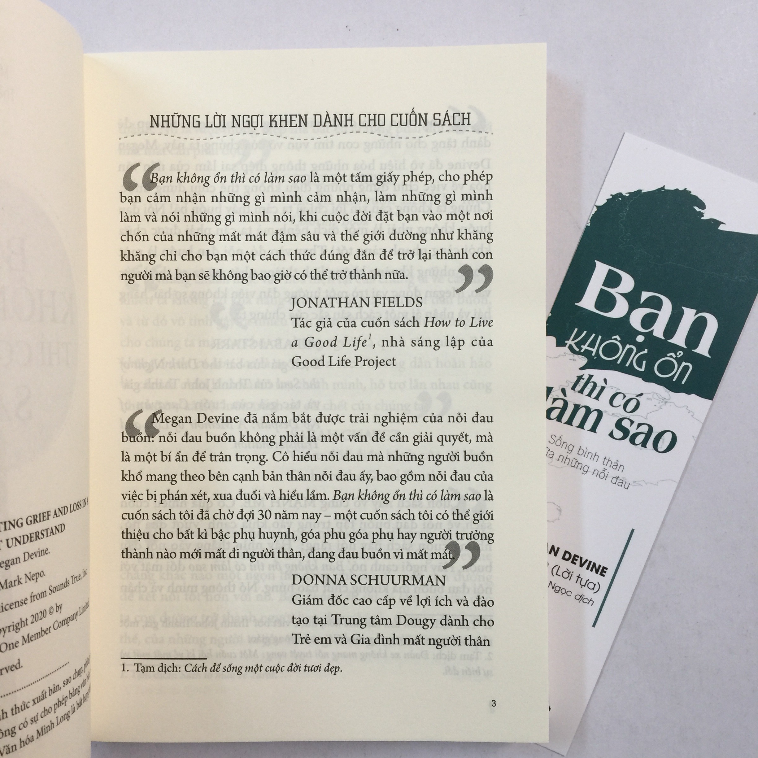 Có ai sống mà không ôm trong mình những nỗi đau khó nói thành lời. Sống, ta tồn tại để yêu và mất mát. Và “ta không sống ở đây để sửa chữa những đau đớn của mình, mà là để chăm sóc nó.”   “ Một trong những điều khó khăn nhất của việc trải qua những thời khắc khó khăn là cố gắng có được và trao đi sự hỗ trợ. Trong Bạn Không Ổn Thì Có Làm sao, Megan Devine dẫn dắt chúng ta đi qua những khoảng thời gian khó khăn bằng sự tế nhị. Với thái độ chấp nhận và lòng trắc ẩn đầy yêu thương, Megan là một quan điểm mới mẻ, ấm áp mà bạn cần.” – Vanessa Van Edwards “Trong món quà được viết bằng những ngôn từ đẹp đẽ để dành tặng cho con tim vụn vỡ của chúng ta này. Megan Devine đã vô hiệu hóa những thông điệp sai lầm của nền văn hóa chịu đựng những điwwù không thể chịu đựng được. Chúng ta không cần xin lỗi chỉ vì ta cảm thấy buồn bã. Nỗi đau buồn không phải là một dịch bệnh mà ta cần phải chữa khỏi càng nhanh càng tốt.! Thay vào đó nỗi đau buồn là một trong những khoảng không linh thiêng nhất mà ta có thể bước vào. Megan đóng vai trò một người hướng dẫn viên không sợ hãi, hăng hái và nhân ái một cách sâu sắc của chúng ta: - Mirabai Starr Cảm ơn bạn đã tham khảo cuốn sách này. Chúc một ngày tốt lành!